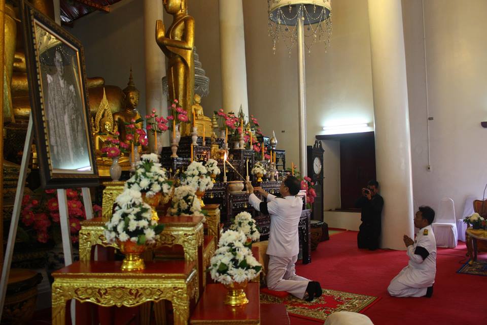 ข้าราชการ พ่อค้า ประชาชน ชาวจังหวัดนครศรีธรรมราช ร่วมพิธีบำเพ็ญกุศลสวดพระอภิธรรมเพื่อถวายเป็นพระราชกุศล พระบาทสมเด็จพระปรมินทรมหาภูมิพลอดุลยเดชฯ ณ พระวิหารหลวง วัดพระมหาธาตุ วรมหาวิหาร จังหวัดนครศรีธรรมราช ในวันศุกร์ที่ 4 พฤศจิกายน 2559 เวลา 15.52 น. โดยมีนายขจรเกียรติ รักพานิชมณี รองผู้ว่าราชการจังหวัดนครศรีธรรมราช เป็นประธานในพิธี