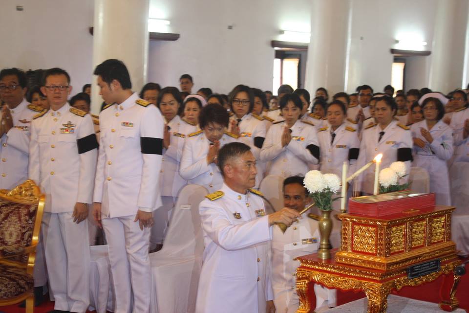 ข้าราชการ พ่อค้า ประชาชน ชาวจังหวัดนครศรีธรรมราช ร่วมพิธีบำเพ็ญกุศลสวดพระอภิธรรมเพื่อถวายเป็นพระราชกุศล พระบาทสมเด็จพระปรมินทรมหาภูมิพลอดุลยเดชฯ ณ พระวิหารหลวง วัดพระมหาธาตุวรมหาวิหาร จังหวัดนครศรีธรรมราช ในวันศุกร์ที่ 28 ตุลาคม 2559 เวลา 15.52 น. โดยมีนายดนัย เจียมวิเศษสุข รองผู้ว่าราชการจังหวัดนครศรีธรรมราช เป็นประธาน