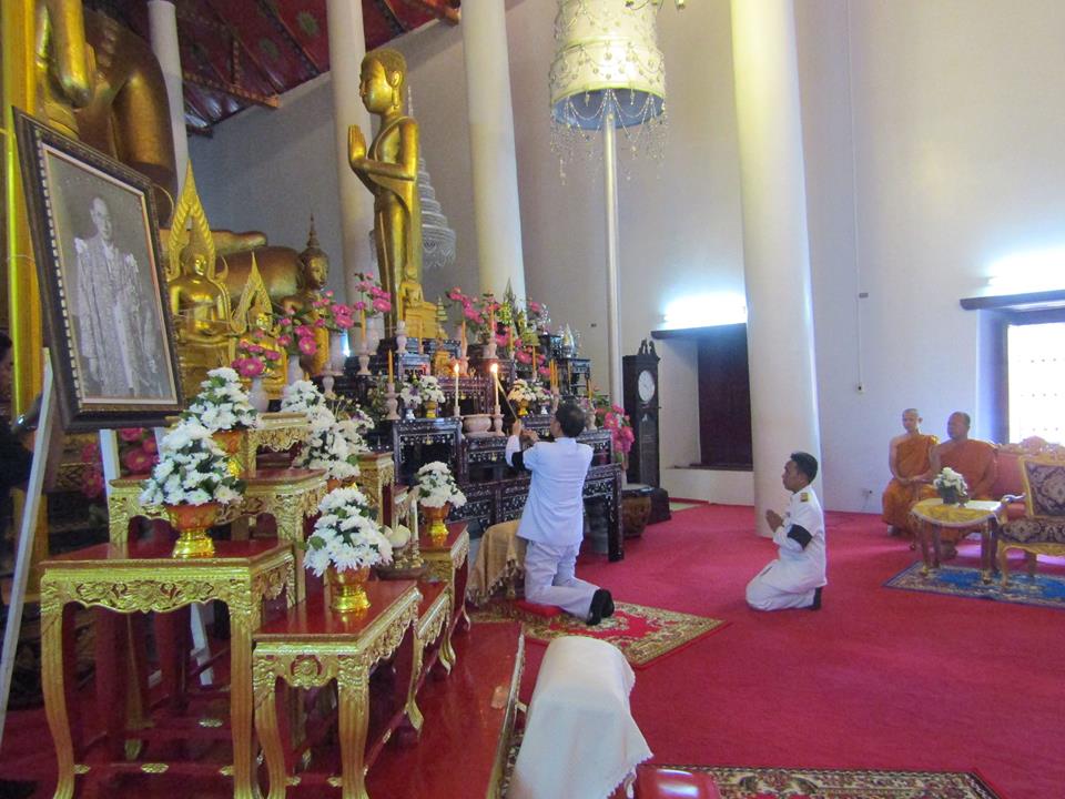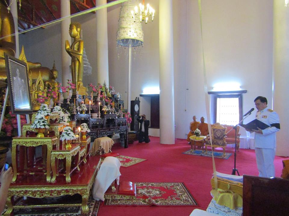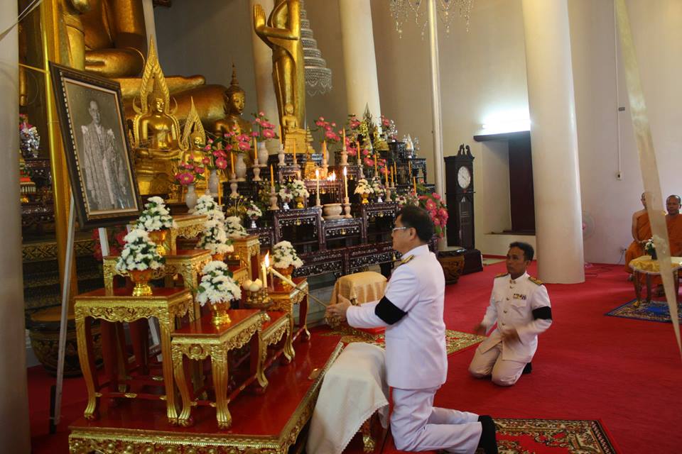 ข้าราชการ พ่อค้า ประชาชน ชาวจังหวัดนครศรีธรรมราช ร่วมพิธีบำเพ็ญกุศลสวดพระอภิธรรมเพื่อถวายเป็นพระราชกุศล พระบาทสมเด็จพระปรมินทรมหาภูมิพลอดุลยเดชฯ ณ พระวิหารหลวง วัดพระมหาธาตุวรมหาวิหาร จังหวัดนครศรีธรรมราช ในวันพุธที่ 26 ตุลาคม 2559 เวลา 15.52 น. โดยมีนายขจรเกียรติ รักพานิชมณี รองผู้ว่าราชการจังหวัดนครศรีธรรมราช เป็นประธานในพิธี