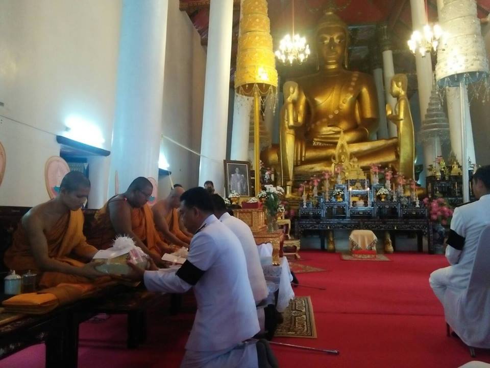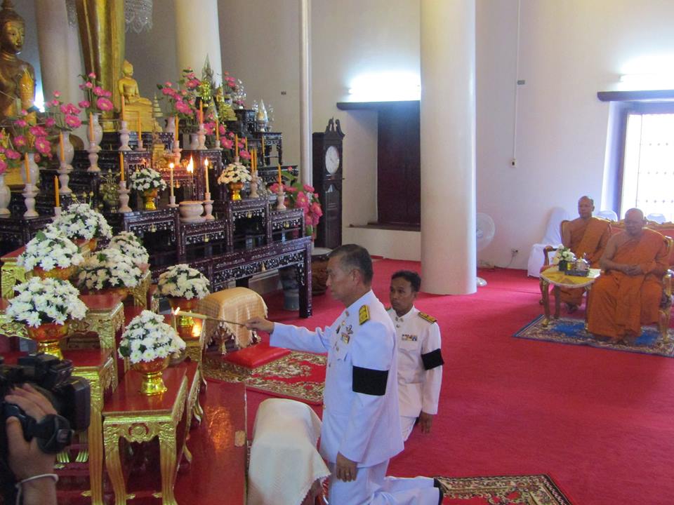 ข้าราชการ พ่อค้า ประชาชน ชาวจังหวัดนครศรีธรรมราช ร่วมพิธีบำเพ็ญกุศลสวดพระอภิธรรมเพื่อถวายเป็นพระราชกุศล แด่พระบาทสมเด็จพระปรมินทรมหาภูมิพลอดุลยเดชฯ ในวันศุกร์ที่ 21 ตุลาคม 2559 เวลา 15.52 น. ณ พระวิหารหลวง วัดพระมหาธาตุ วรมหาวิหาร จังหวัดนครศรีธรรมราช โดยมีนายดนัย เจียมวิเศษสุข รองผู้ว่าราชการจังหวัดนครศรีธรรมราช เป็นประธานในพิธี