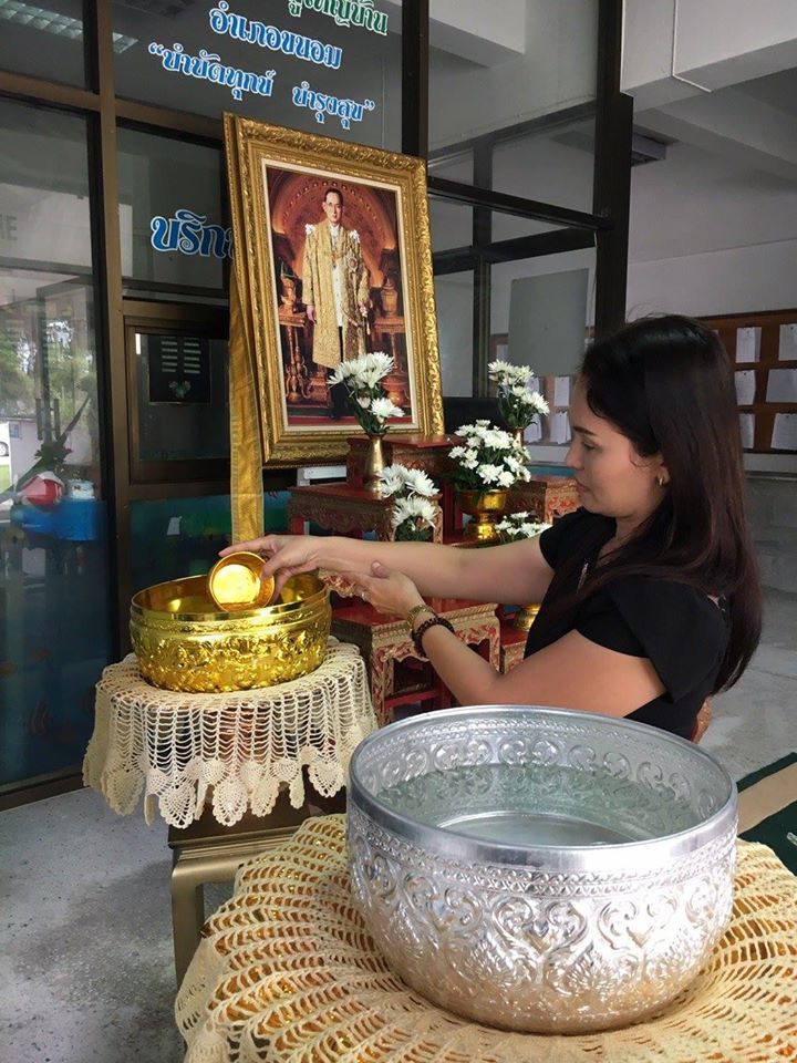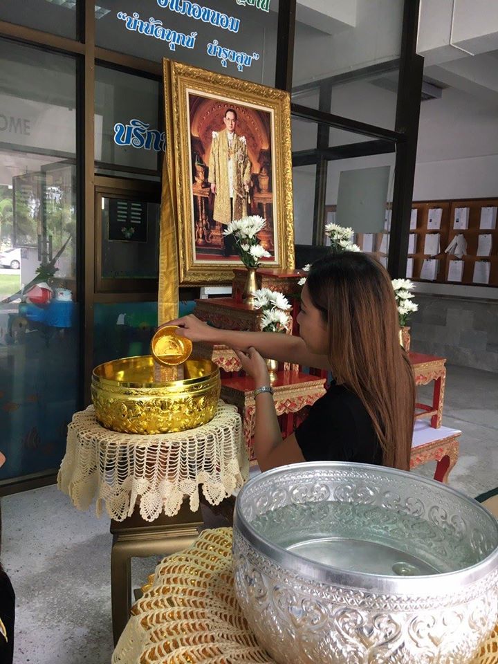 ชาวขนอมร่วมพิธีสรงน้ำพระบรมศพหน้าพระบรมฉายาลักษณ์ พระบาทสมเด็จพระปรมินทรมหาภูมิพลอดุลยเดชฯ