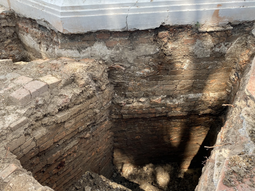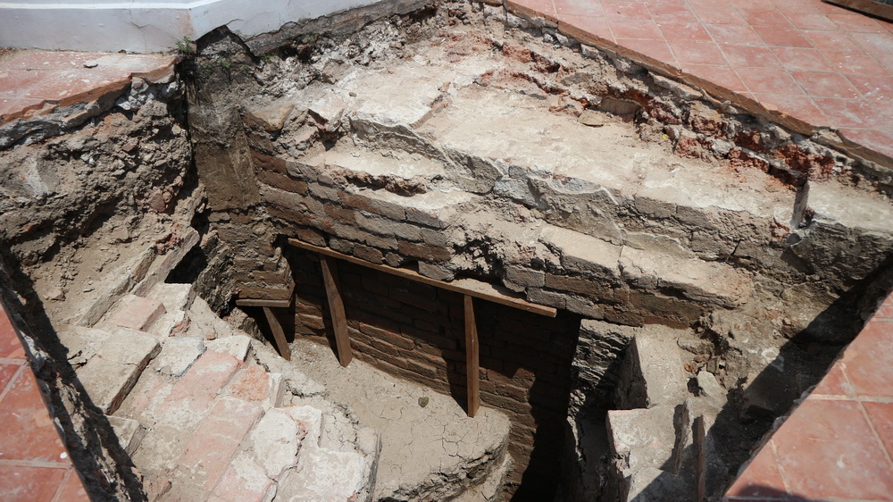 ส่วนมุมป้อมด้านทิศตะวันออก ใต้ระดับพื้นใช้งานเดิมลงไปประมาณ ๓๐ เซนติเมตร พบชั้นปูพื้นด้วยอิฐและดาดปูนเช่นเดียวกัน แต่ชั้นดินถมอัดใต้พื้นใช้งานเดิมบริเวณนี้ เป็นก้อนอิฐหักผสมดินเหนียว จากผนังกำแพงป้อมถึงผนังป้อมชั้นที่ ๒ พบการก่อกำแพงใต้ระดับพื้นใช้งานเดิมลงไป ในแนวตะวันออก-ตะวันตก เพื่อค้ำยันผนังป้อมทั้ง ๒ ด้านไว้ โดยมีการก่ออิฐประสานกันระหว่างผนังป้อมและกำแพงนี้ ซึ่งพบว่ามีการทรุดตัวลงไปทางด้านทิศตะวันตกด้วย ฐานป้อมชั้น ๒ และฐานรากของกำแพงใต้ระดับพื้นใช้งานเดิม ตั้งอยู่บนชั้นดินเหนียวถมอัด มีความลึกที่ต่ำกว่าระดับพื้นใช้งานปัจุบันประมาณ ๔.๒๐ เมตร เช่นเดียวกับผนังและกำแพงป้อมด้านทิศตะวันตก