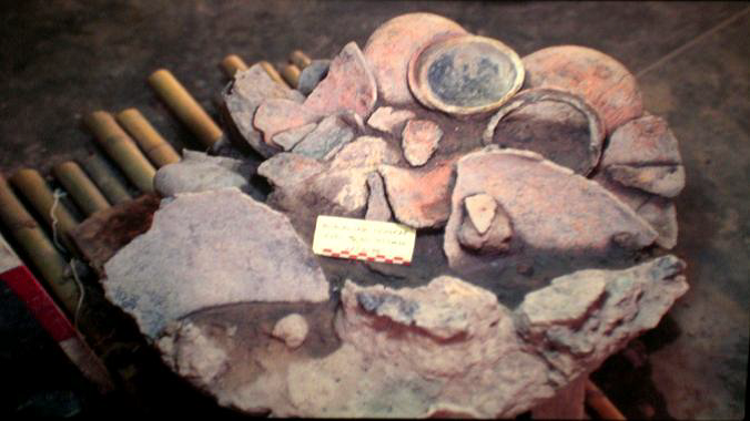 สมัยที่ ๑ ในช่วงก่อนประวัติศาสตร์ตอนปลาย (ยุคสำริด-เหล็ก) พบหลักฐานการฝังศพครั้งที่ ๒ และ โบราณวัตถุเช่น ภาชนะดินเผาสีส้มและสีขาวนวลที่กำหนดอายุได้มากกว่า ๒,๐๐๐ ปีมาแล้ว