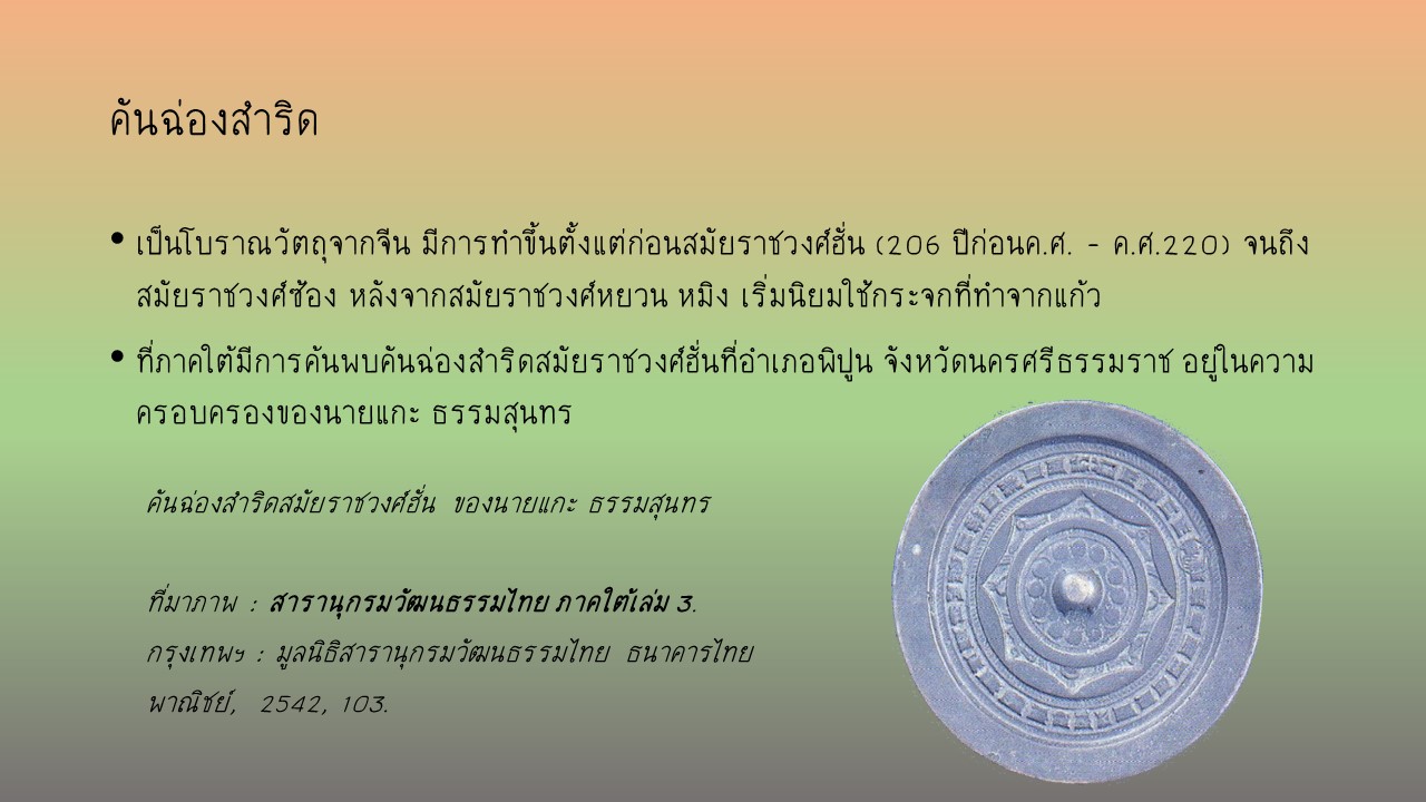 คันฉ่องสำริดที่จัดแสดงในพิพิธภัณฑสถานแห่งชาติ ถลาง