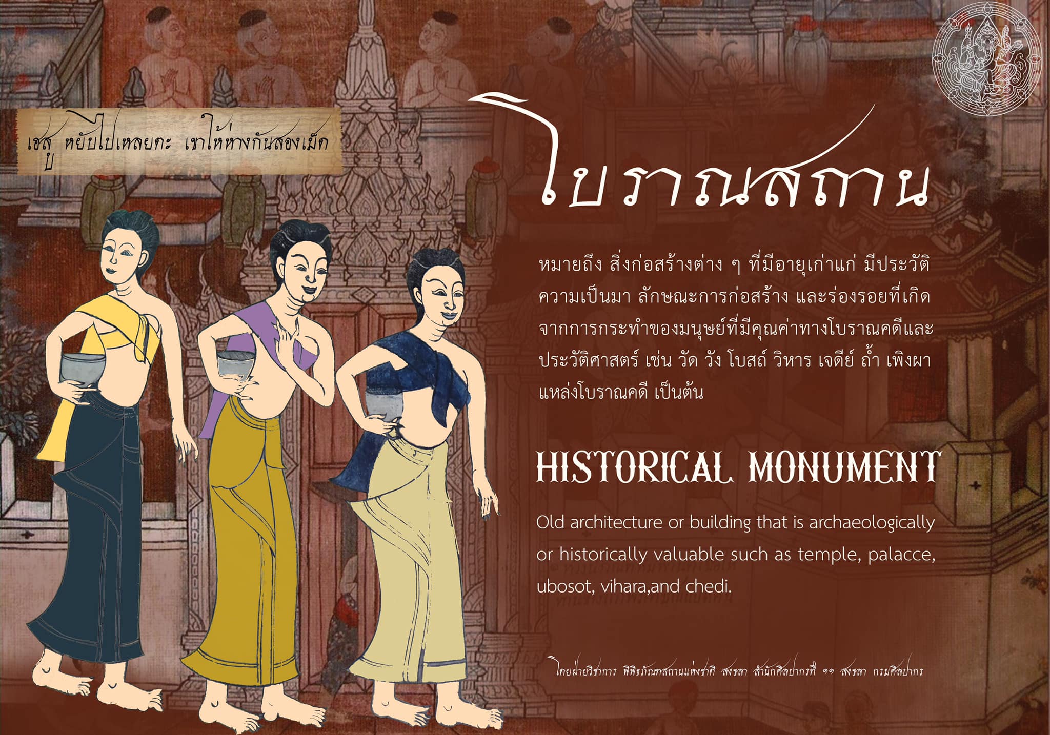 พิพิธภัณฑสถานแห่งชาติ สงขลา ขอนำเสนอ “ศัพท์น่ารู้ก่อนดูพิพิธภัณฑ์ : Definitions Before Visiting the Exhibitions” ช่วยปูพื้นฐานด้านคำศัพท์ที่เกี่ยวข้องกับนิทรรศการด้านประวัติศาสตร์และโบราณคดี เพื่อให้การเข้าชมพิพิธภัณฑ์ครั้งถัดไปมีความเข้าใจมากยิ่งขึ้น โดยจัดทำองค์ความรู้คำว่า “โบราณสถาน : Historical Monument”