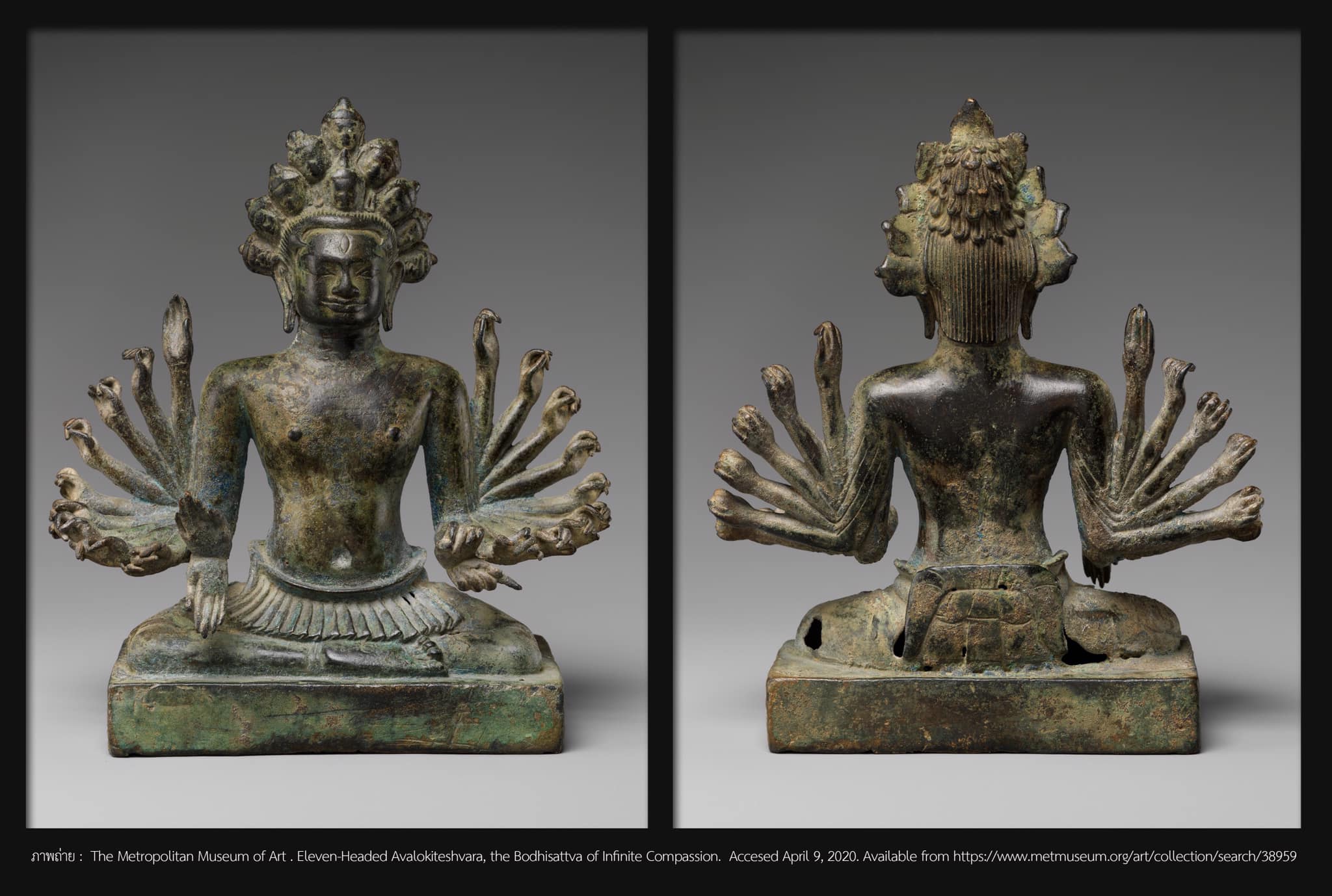 อ้างอิงรูปภาพ : พระโพธิสัตว์อวโลกิเตศวร 11 เศียร 4 กร ประทับยืน ที่มา : tumblr.com/Boran Asian Art. Ekadasamukha Avalokitesvara. Accesed April 9, 2020. Available from https://boranbkk.tumblr.com/post/53927783948/a-very-handsome-rare-example-of-a-10th-century พระโพธิสัตว์อวโลกิเตศวร 11 เศียร 22 กร ประทับนั่ง ที่มา : The Metropolitan Museum of Art . Eleven-Headed Avalokiteshvara, the Bodhisattva of Infinite Compassion. Accesed April 9, 2020. Available from https://www.metmuseum.org/art/collection/search/38959
