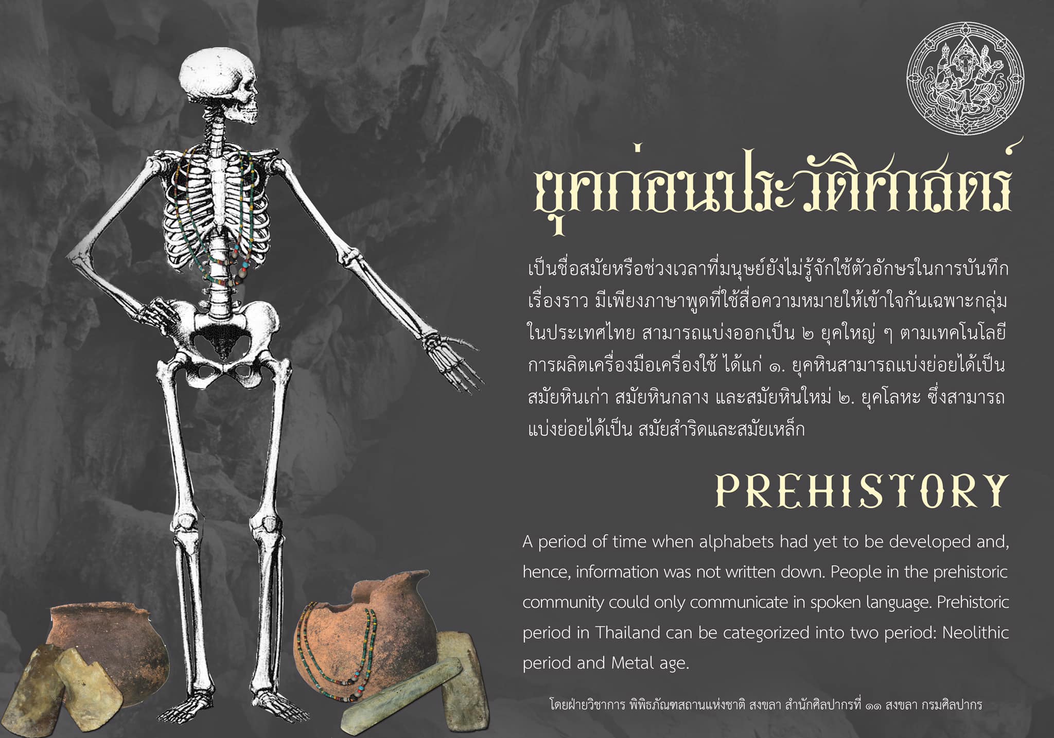 พิพิธภัณฑสถานแห่งชาติ สงขลา นำเสนอองค์ความรู้ เรื่อง “ศัพท์น่ารู้ก่อนดูพิพิธภัณฑ์ : Definitions Before Visiting the Exhibitions” เพื่อช่วยปูพื้นฐานด้านคำศัพท์ที่เกี่ยวข้องกับนิทรรศการด้านประวัติศาสตร์และโบราณคดี โดยวันนี้ขอนำเสนอคำว่า “ก่อนประวัติศาสตร์ : Prehistory”