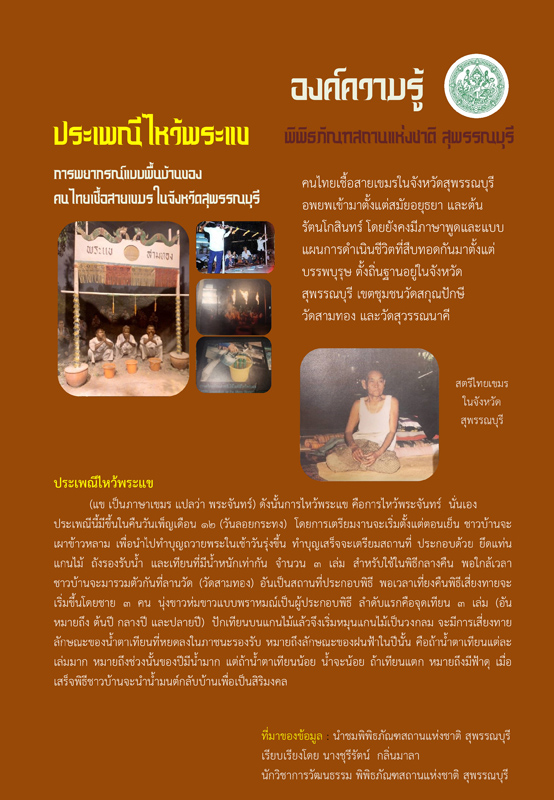 พิพิธภัณฑสถานแห่งชาติ สุพรรณบุรี เสนอองค์ความรู้ เรื่อง ประเพณีไหว้พระแข