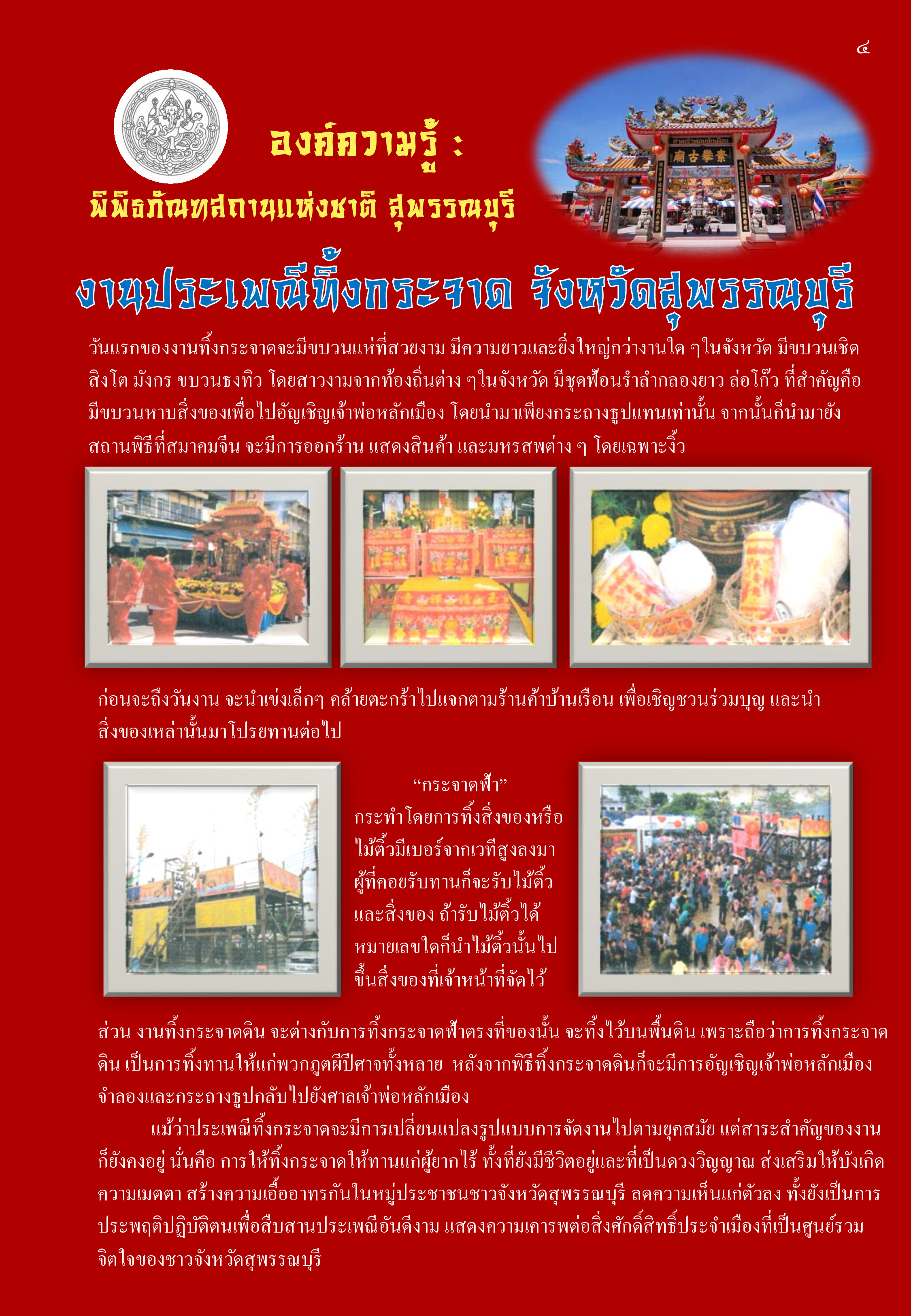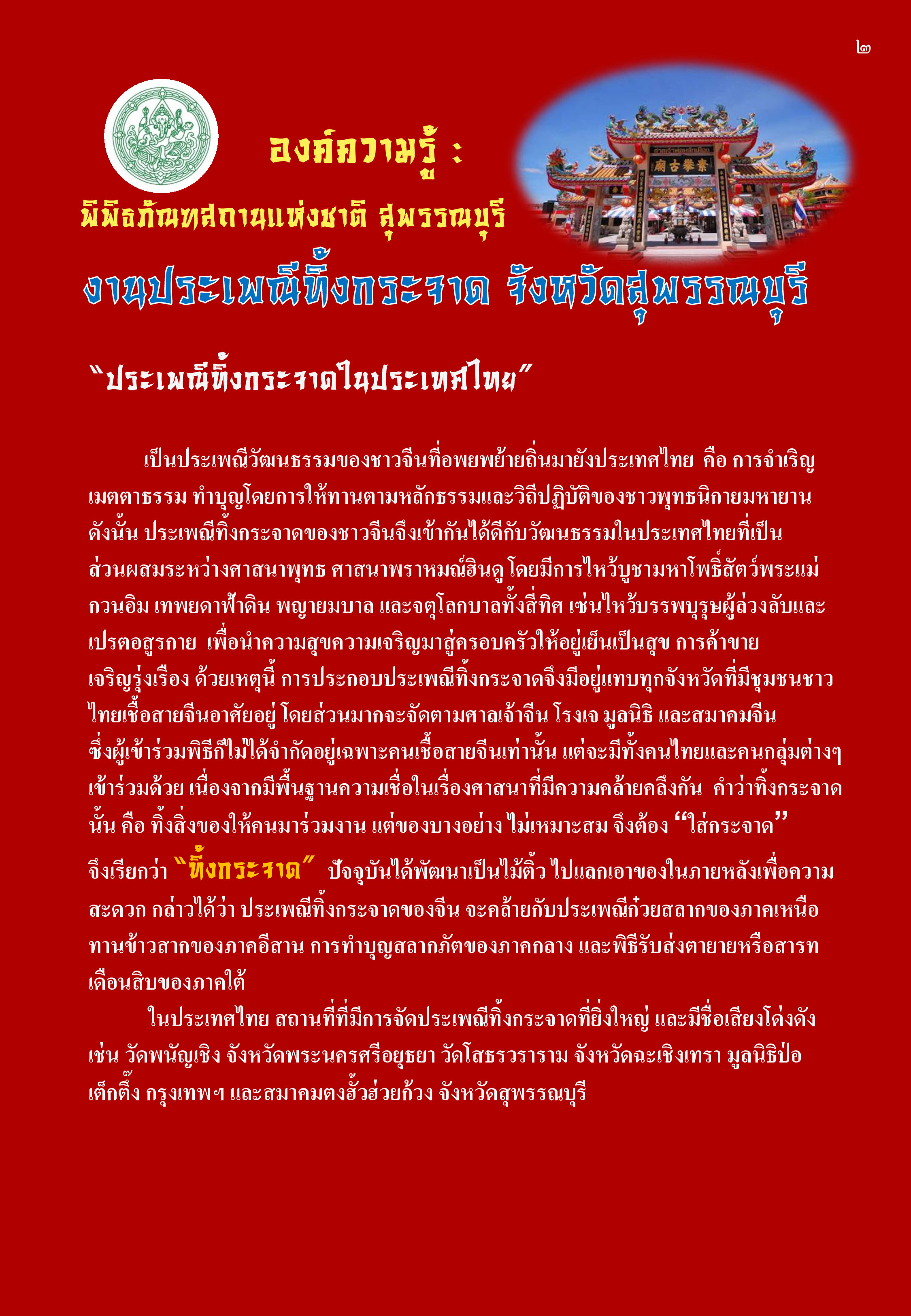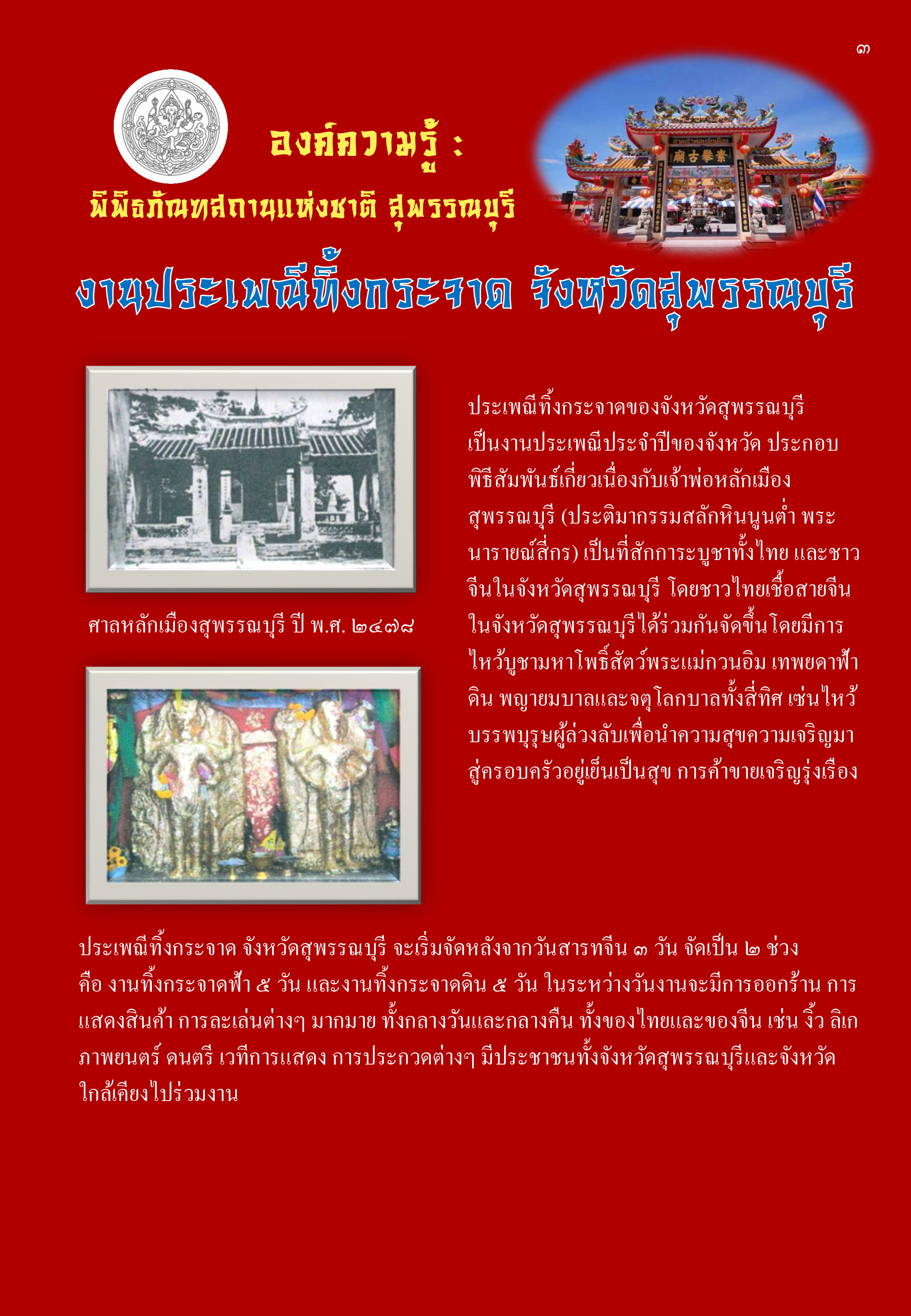 องค์ความรู้ เรื่อง งานประเพณีทิ้งกระจาด จังหวัดสุพรรณบุรี จัดทำโดย พิพิธภัณฑสถานแห่งชาติ สุพรรณบุรี