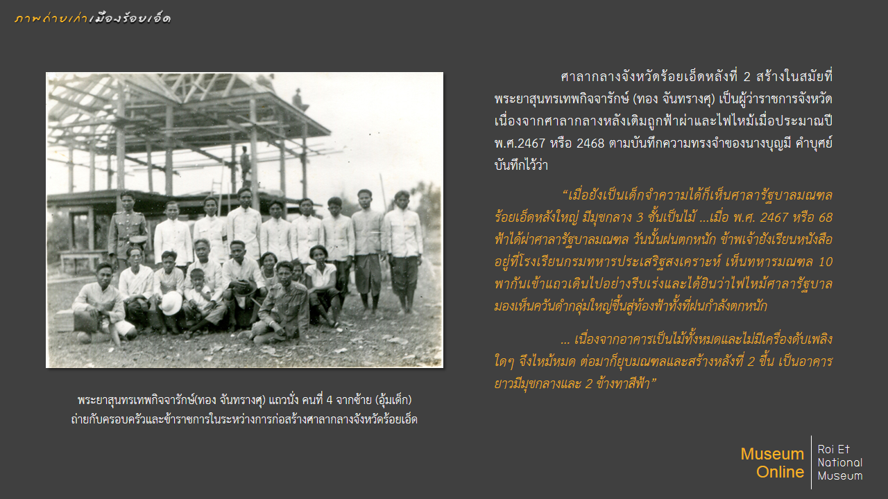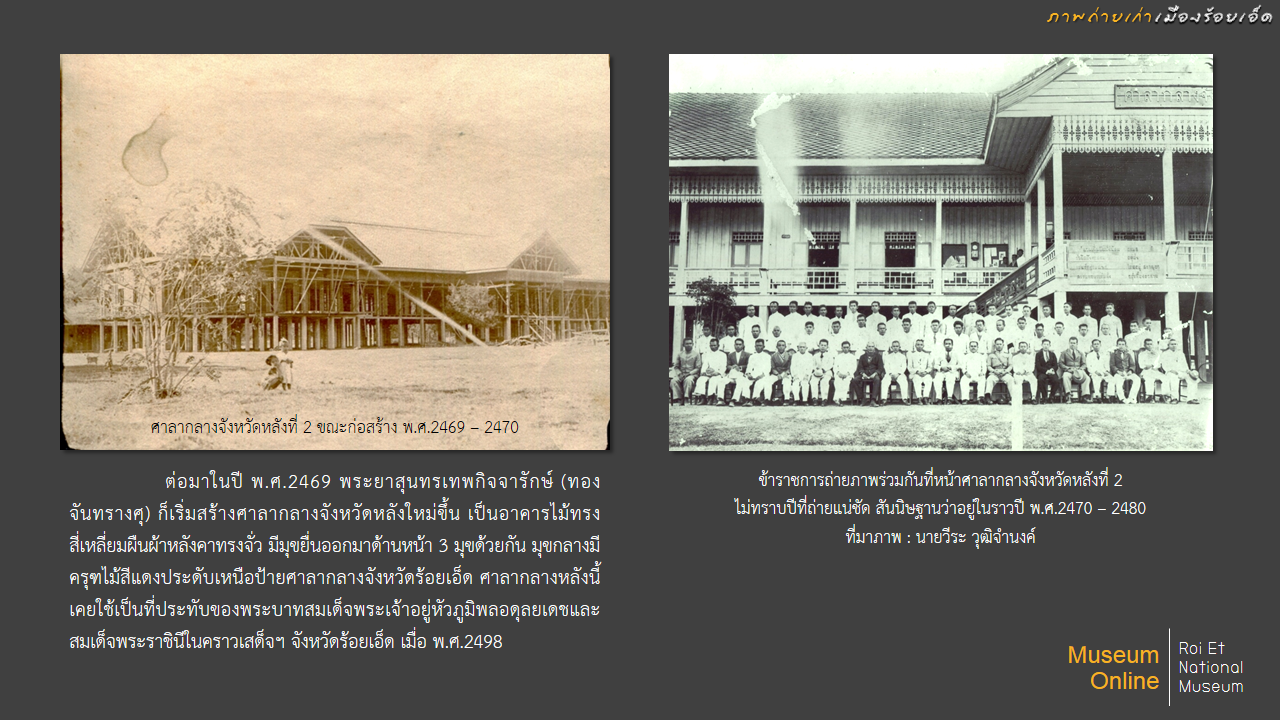 องค์ความรู้ เรื่อง ภาพถ่ายเก่าเมืองร้อยเอ็ด ตอน ศาลากลางจังหวัดร้อยเอ็ดหลังที่ ๒ จัดทำโดยพิพิธภัณฑสถานแห่งชาติ ร้อยเอ็ด