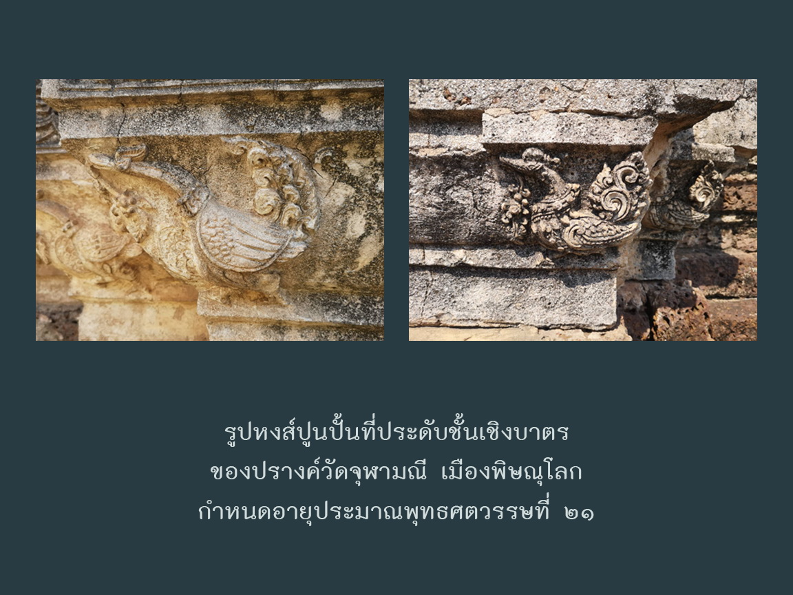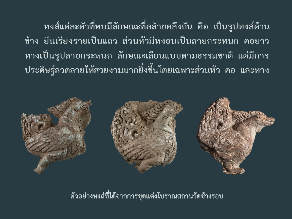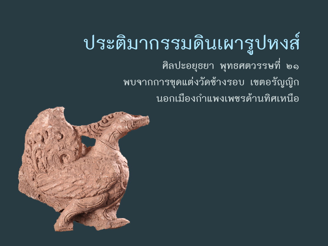 ประติมากรรมดินเผารูปหงส์จากโบราณสถานวัดช้างรอบ เมืองกำแพงเพชร