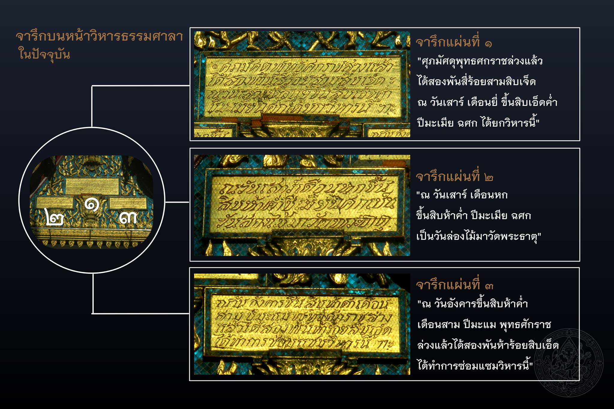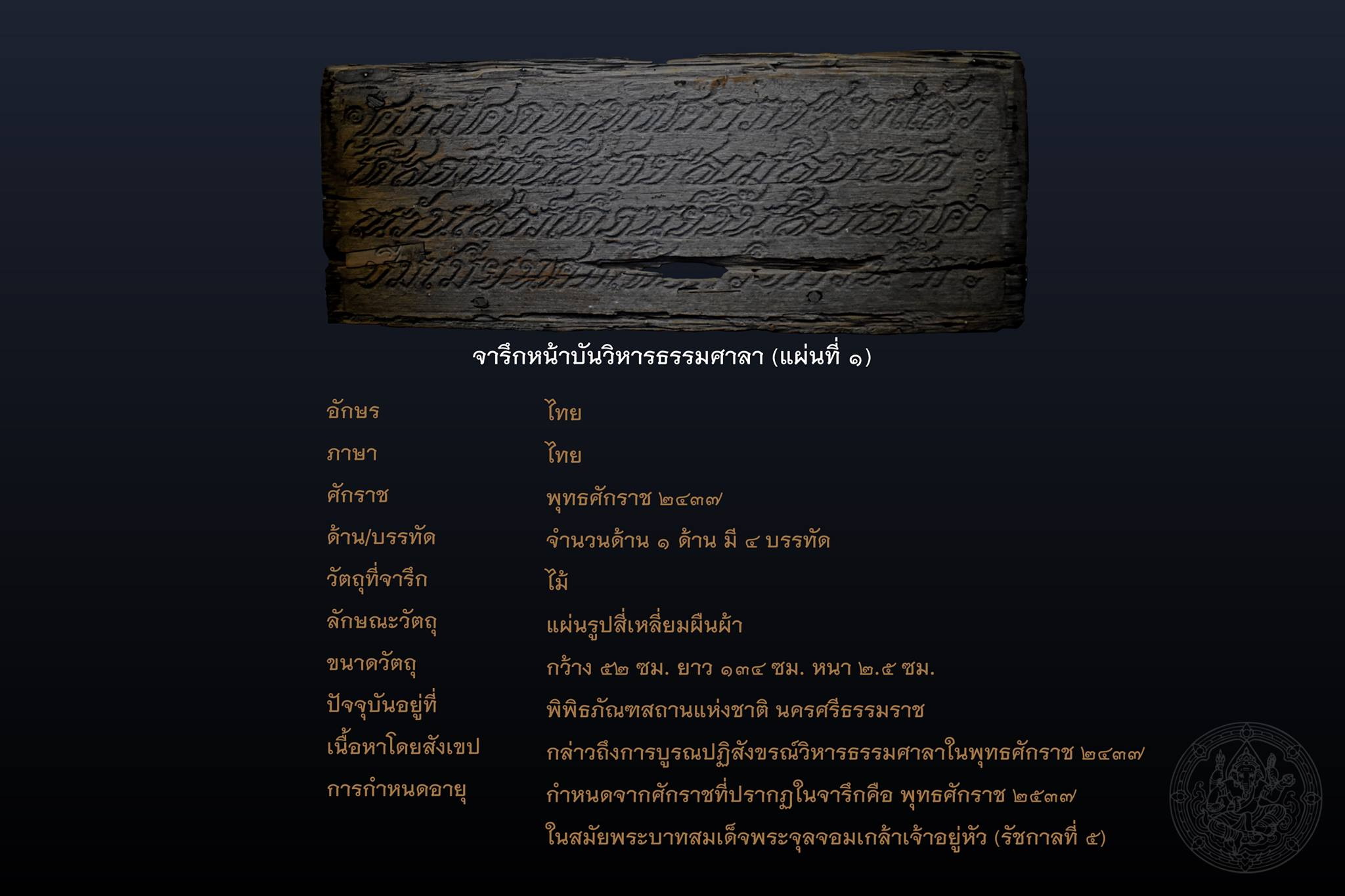 จารึกหน้าบันวิหารธรรมศาลา วัดพระมหาธาตุวรมหาวิหาร นครศรีธรรมราช