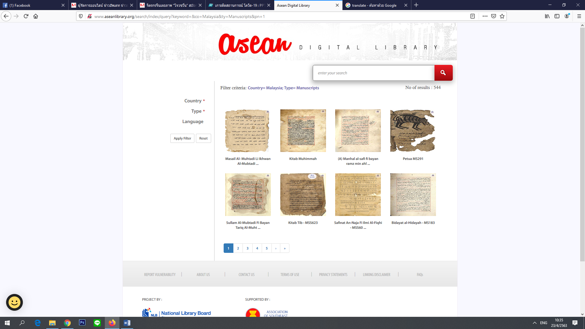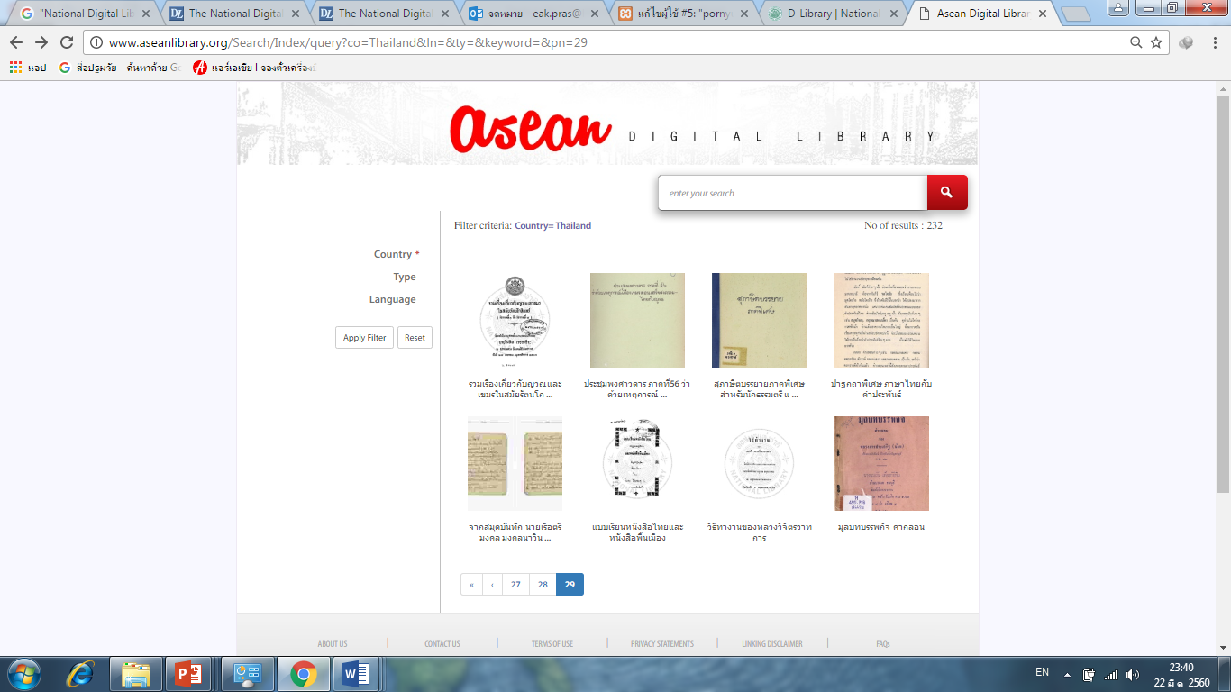 รูปที่ 3 ตัวอย่างข้อมูลรายการเนื้อหาดิจิทัลประเภทหนังสือหายากในห้องสมุดดิจิทัลแห่งชาติอาเซียน