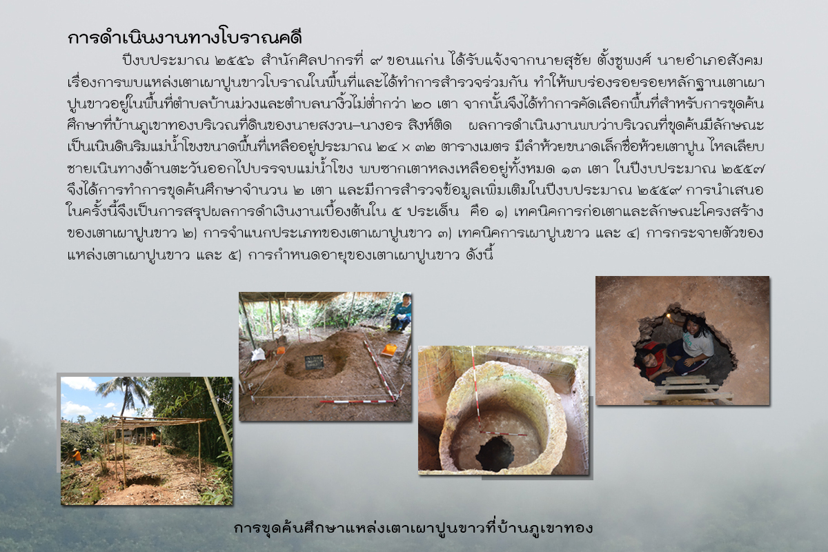 องค์ความรู้ เรื่อง ปูนขาวจากระบวนการศึกษาทางด้านโบราณคดี ตอนที่ ๑ การขุดค้นแหล่งโบราณคดีเตาเผาปูนขาวบ้านภูเขาทอง หมู่ ๗ ตำบลบ้านม่วง อำเภอสังคม จังหวัดหนองคาย