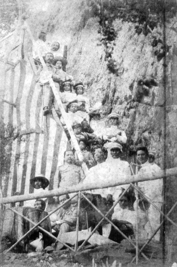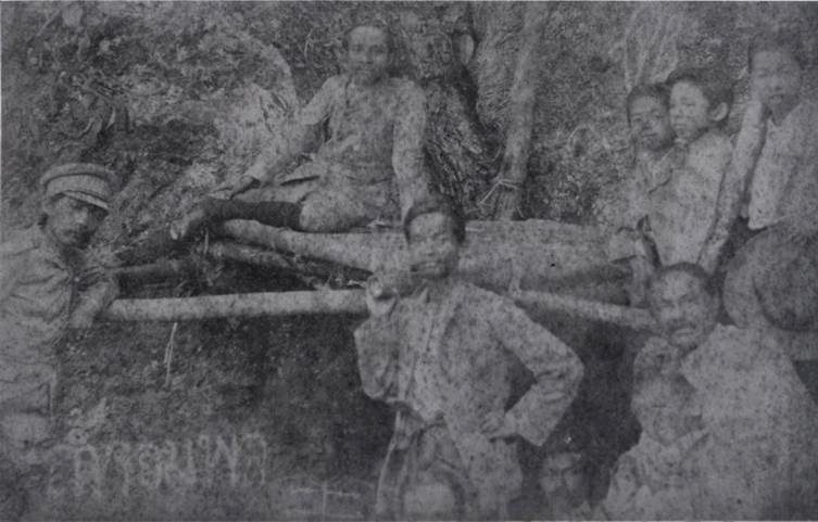 ภาพ ๒ พระบาทสมเด็จพระจุลจอมเกล้าเจ้าอยู่หัว รัชกาลที่ ๕ ประทับบนแคร่ไม้ บริเวณถ้ำจอมพล