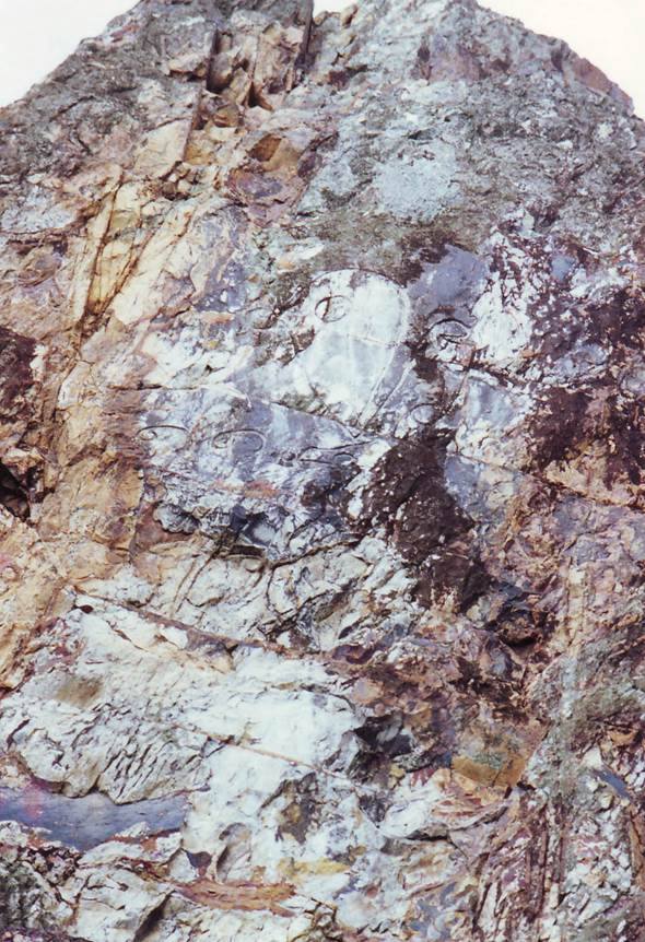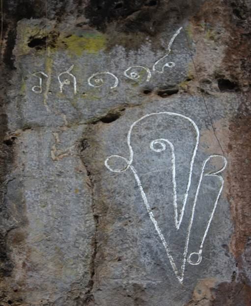 ภาพ ๑ อักษรพระปรมาภิไธยย่อที่จารึกไว้ ณ ถ้ำจอมพล