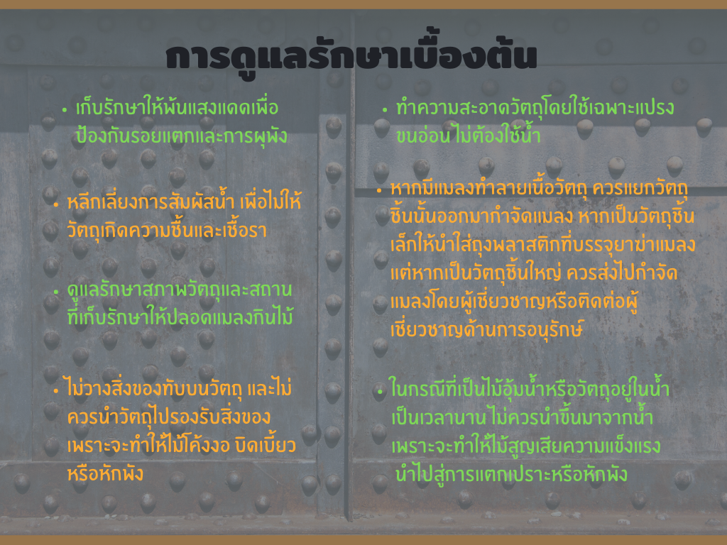 การดูแลรักษาโบราณวัตถุ ศิลปวัตถุเบื้องต้น (ประเภทไม้)