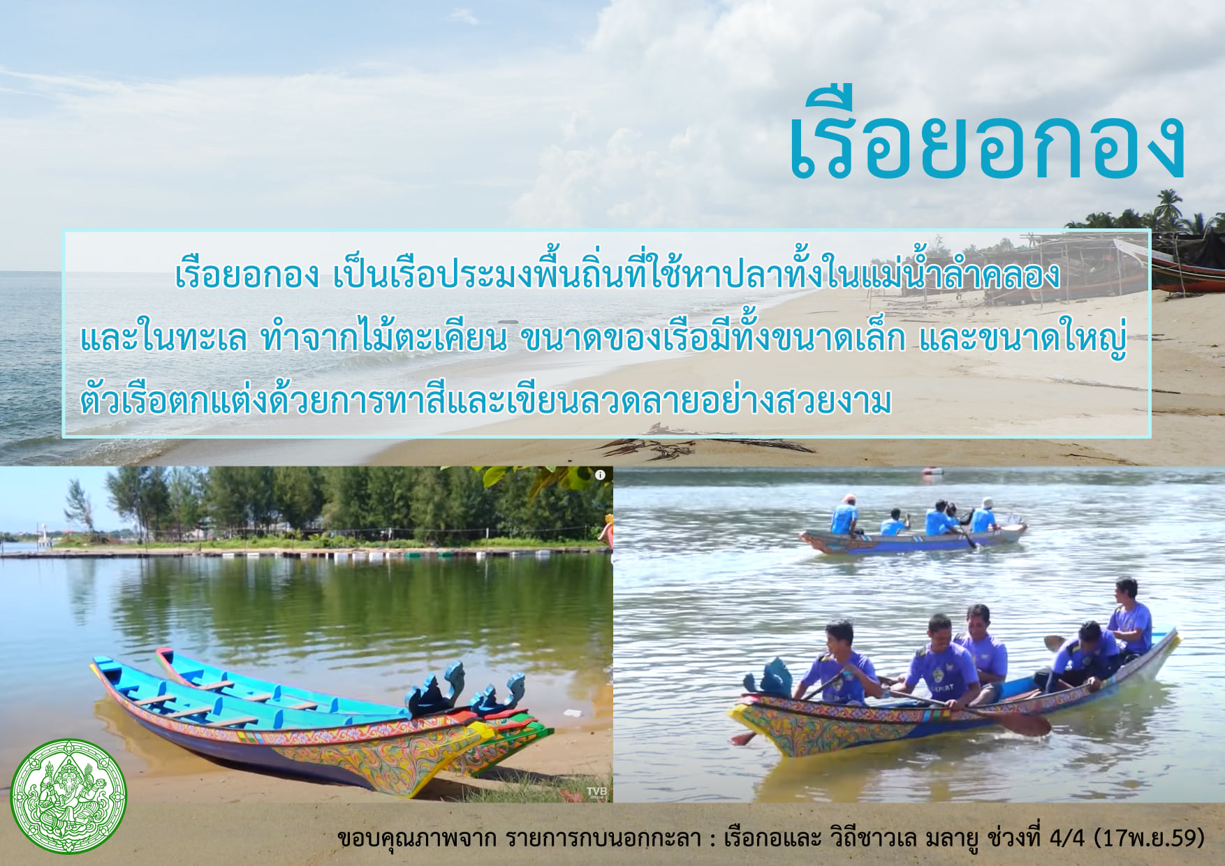 เรือยอกอง เป็นเรือประมงพื้นถิ่นที่ใช้หาปลาทั้งในแม่น้ำลำคลองและในทะเล ทำจากไม้ตะเคียน ขนาดของเรือมีทั้ขนาดเล็ก และขนาดใหญ่