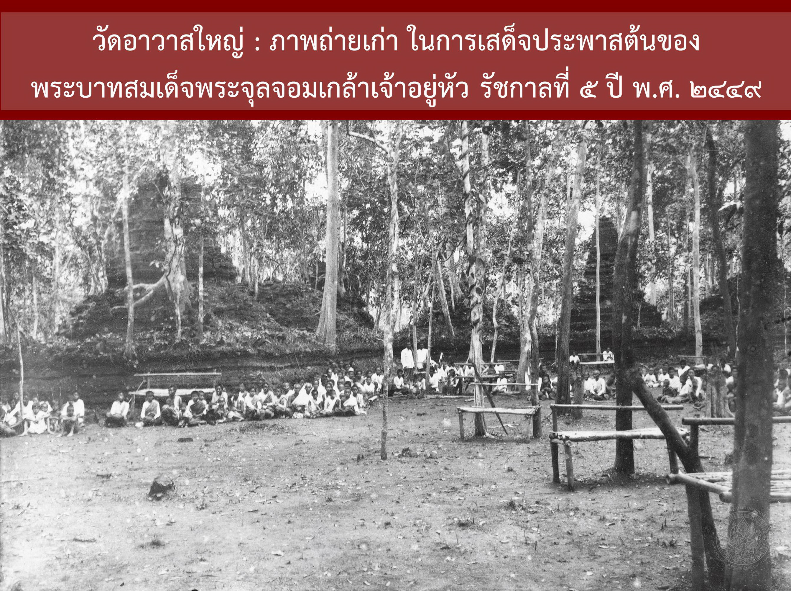 พระราชนิพนธ์ “เสด็จประพาสต้น” ในพระบาทสมเด็จพระจุลจอมเกล้าเจ้าอยู่หัว รัชกาลที่ ๕ ได้ระบุถึงการเสด็จประพาสต้นครั้งที่ ๒ เมื่อปีพุทธศักราช ๒๔๔๙ โดยได้เสด็จประพาสเมืองกำแพงเพชรโบราณในเขตอรัญญิก ในวันที่ ๒๔ สิงหาคม พ.ศ.๒๔๔๙ และได้ทรงมีพระราชนิพนธ์บรรยายเกี่ยวกับโบราณสถานวัดอาวาสใหญ่ ดังนี้