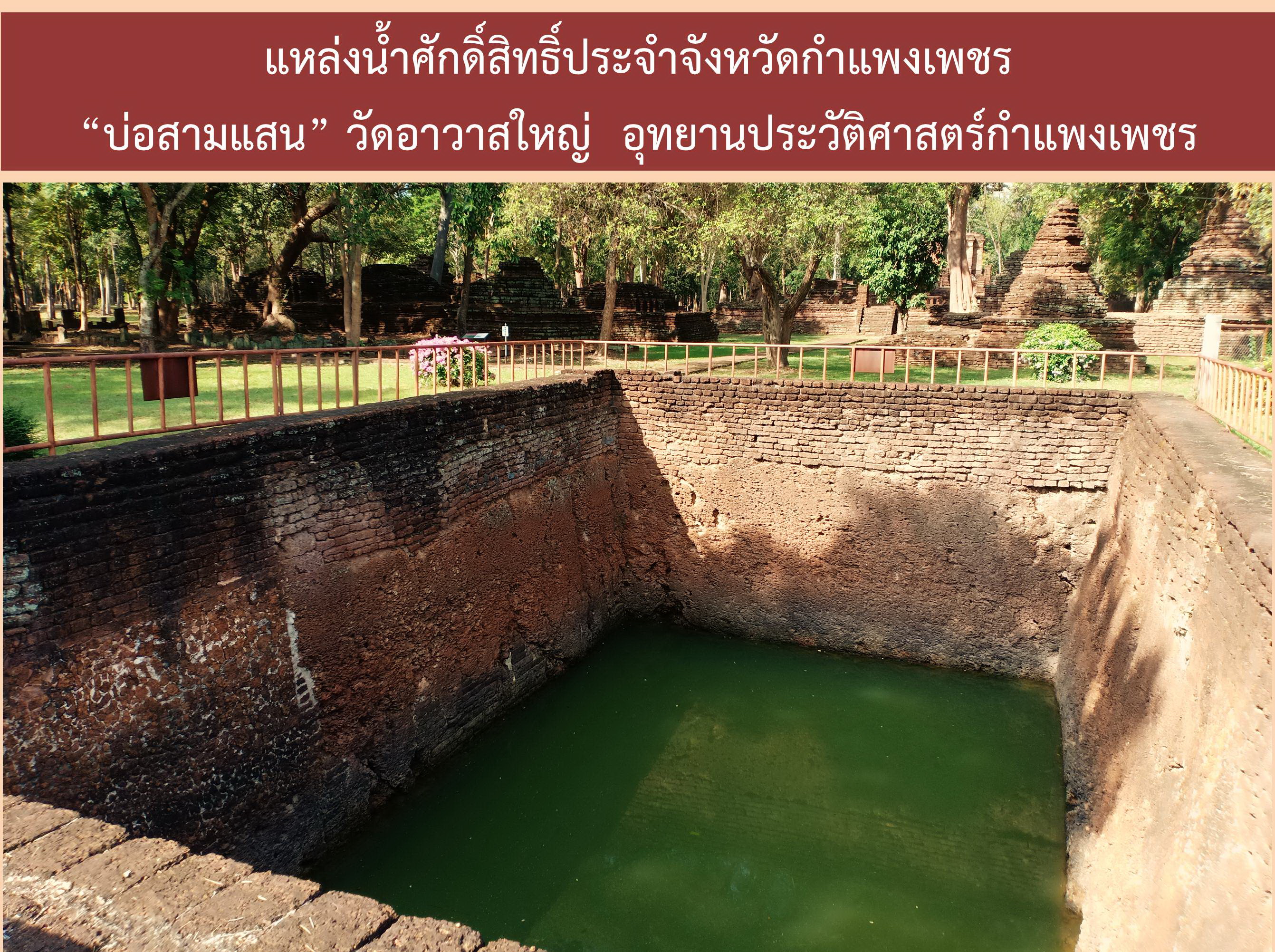 ด้านทิศตะวันออกของวัดอาวาสใหญ่มีบ่อน้ำรูปสี่เหลี่ยมผืนผ้าขนาดใหญ่ ประชาชนในท้องถิ่นเรียกกันว่า “บ่อสามแสน” มีขนาดกว้าง ๙.๕๐ เมตร ยาว ๑๖.๕๐ เมตร ลึก ๖.๐ เมตร โดยเป็นการขุดลึกลงไปในชั้นของศิลาแลง เพื่อนำศิลาแลงมาใช้เป็นวัสดุในการก่อสร้างอาคารภายในวัดและปรับให้บ่อศิลาแลงนั้น เป็นบ่อน้ำในภายหลัง บ่อสามแสนเป็นแหล่งน้ำศักดิ์สิทธิ์ประจำจังหวัดกำแพงเพชรที่นำมาเป็นน้ำอภิเษกในพระราชพิธีบรมราชาภิเษก พระบาทสมเด็จพระปรเมนทรรามาธิบดีศรีสินทรมหาวชิราลงกรณ พระวชิรเกล้าเจ้าอยู่หัว