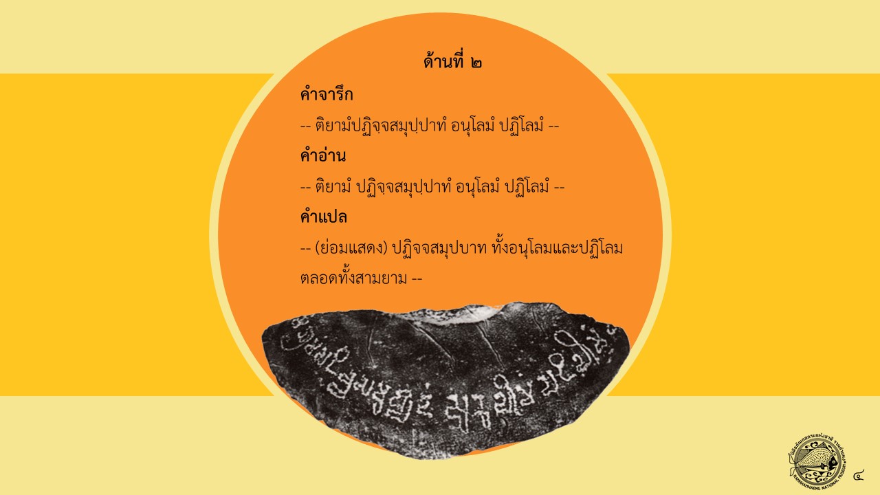 องค์ความรู้ เรื่อง "จารึกวงล้อปัจจยาการ" จัดทำข้อมูลโดย พิพิธภัณฑสถานแห่งชาติ รามคำแหง