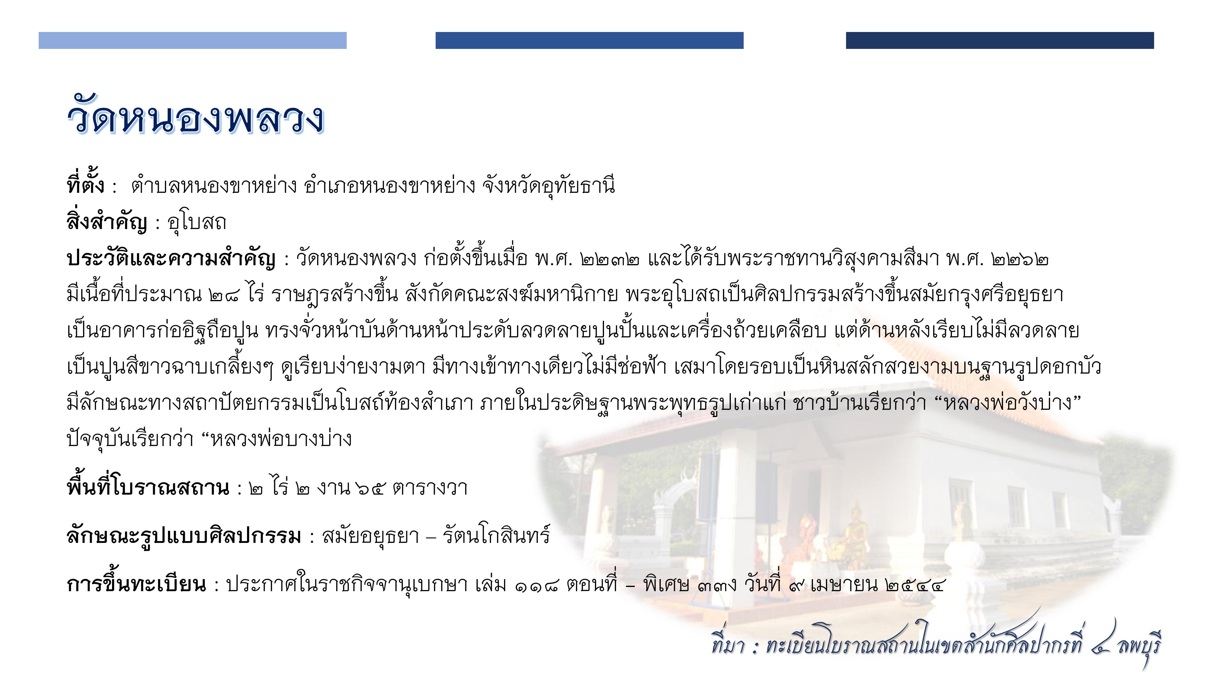 องค์ความรู้ เรื่อง "โบราณสถานวัดหนองพลวง" จัดทำโดย สำนักศิลปากรที่ ๔ ลพบุรี