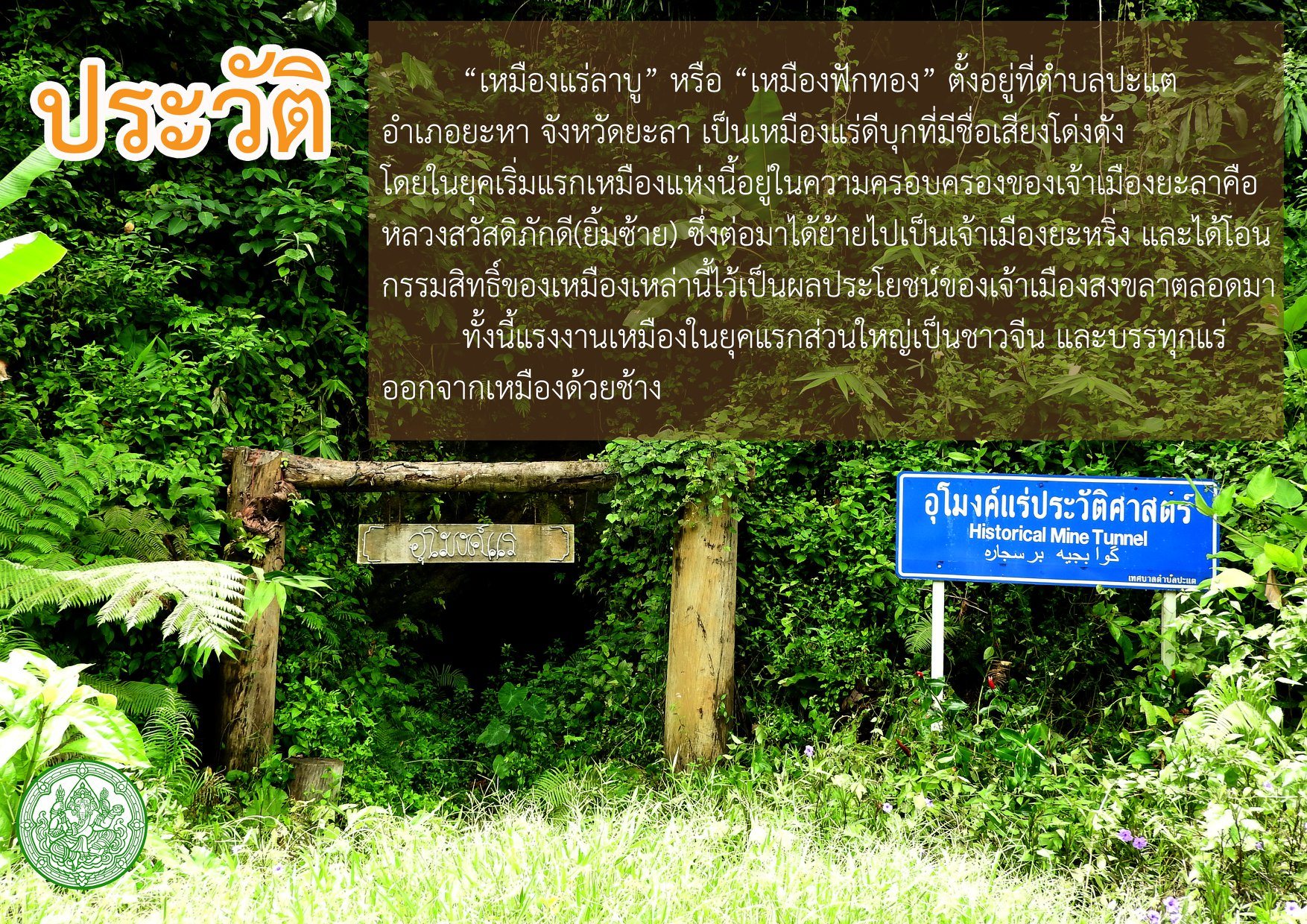 “เหมืองแร่ลาบู หรือ “เหมืองฟักทอง” ตั้งอยู่ที่หมู่ที่ ๘ บ้านลาบู ตำบลปะแต อำเภอยะหา จังหวัดยะลา ในอดีตเหมืองแร่ดีบุกแห่งนี้นับเป็นเหมืองแร่ที่มีชื่อเสียงโด่งดัง โดยในยุคเริ่มแรกเหมืองแห่งนี้อยู่ในความครอบครองของเจ้าเมืองยะลาคือหลวงสวัสดิภักดี(ยิ้มซ้าย) ซึ่งต่อมาได้ย้ายไปเป็นเจ้าเมืองยะหริ่ง และได้โอนกรรมสิทธิ์ของเหมืองเหล่านี้ไว้เป็นผลประโยชน์ของเจ้าเมืองสงขลาตลอดมา ทั้งนี้แรงงานเหมืองในยุคแรกส่วนใหญ่เป็นชาวจีน และบรรทุกแร่ออกจากเหมืองด้วยช้าง