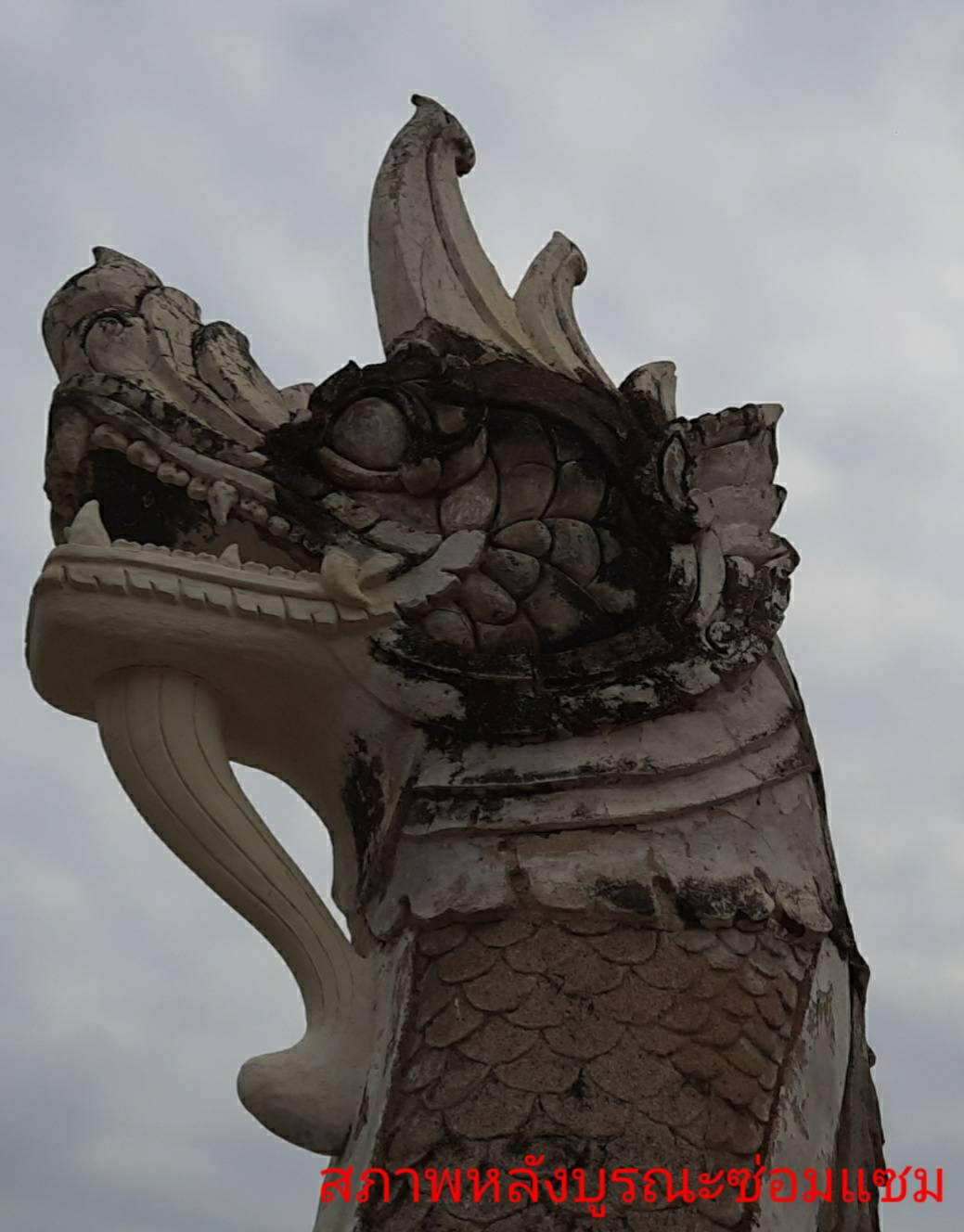 กรมศิลปากรซ่อมแซมปูนปั้นบริเวณปากพญานาคทางขึ้นอุโบสถวัดภูมินทร์ จังหวัดน่าน แล้วเสร็จ