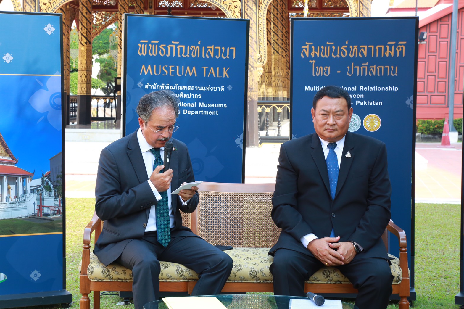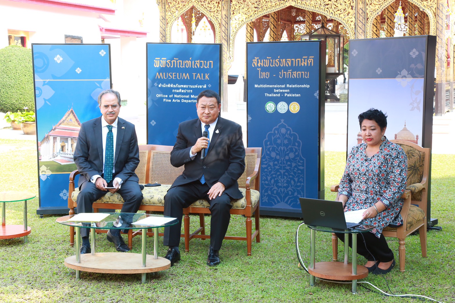 วันศุกร์ที่ ๒๙ มกราคม ๒๕๖๔ นายประทีป เพ็งตะโก อธิบดีกรมศิลปากร และ H.E. Asim Iftikhar Ahamad เอกอัครราชทูตสาธารณรัฐอิสลามปากีสถาน ประจำประเทศไทย กล่าวเปิดโครงการพิพิธภัณฑ์เสวนา ประจำปี ๒๕๖๔/๑ เรื่อง “สัมพันธ์หลากมิติไทย – ปากีสถาน” เนื่องในวาระครบรอบ ๗๐ ปี การสถาปนาความสัมพันธ์ทางการทูตระหว่างสาธารณรัฐอิสลามปากีสถานและราชอาณาจักรไทย โดยมี Prince Miangul Adnan Arangzeb ผู้สืบเชื้อสายเจ้าชายผู้ครองแคว้นสวัต สาธารณรัฐอิสลามปากีสถาน คณาจารย์ประจำมหาวิทยาลัยธรรมศาสตร์ และ ภัณฑารักษ์ประจำสำนักพิพิธภัณฑสถานแห่งชาติ ร่วมเป็นวิทยากรบรรยาย ณ พิพิธภัณฑสถานแห่งชาติ พระนคร