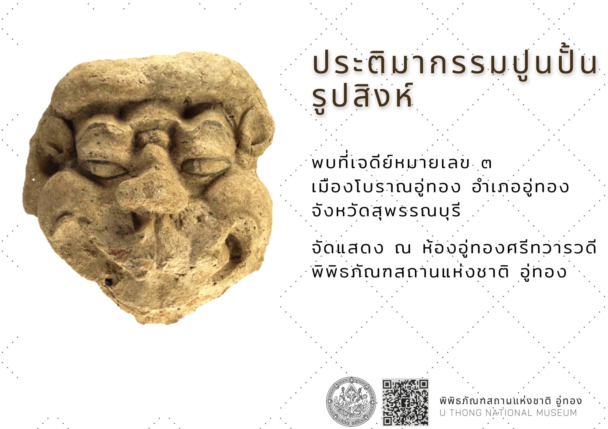 ประติมากรรมปูนปั้นรูปสิงห์ ที่พิพิธภัณฑสถานแห่งชาติ อู่ทอง