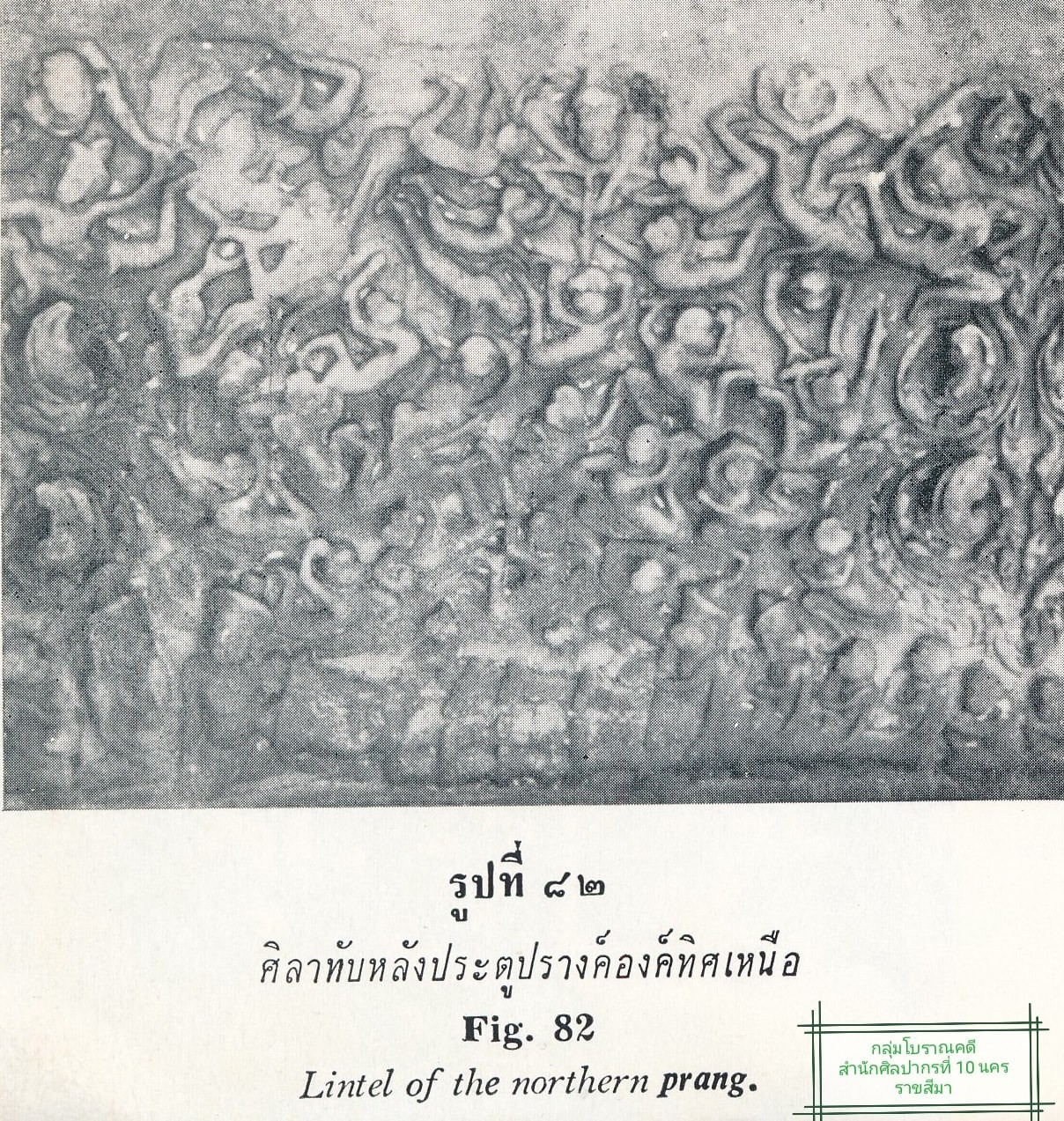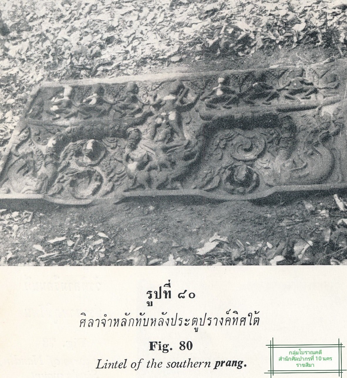 2. #ทับหลังปราสาทด้านทิศเหนือ วัสดุหินทราย สลักภาพเล่าเรื่อง "รามายนะ ตอน พระราม พระลักษณ์ถูกศรนาคบาศ" โดยพระราม และพระลักษมณ์อยู่ในท่านอนถูกรัดด้วยนาคบาศ แวดล้อมด้วยเหล่าวานร โดยฝูงวานรดังกล่าวแสดงความเคลื่อนไหวและแสดงอาการเสียใจอย่างเห็นได้ชัด ตอนบนของภาพสลักภาพบุคคลหรือเทวาดาเหาะ ตรงกลางสลักรูปบุคคลถือคันธนู สันนิษฐานว่า เป็นอินทรชิต เนื่องจากในเรื่องอินทรชิตเป็นผู้ยิงศรนาคบาศใส่พระราม พระลักษมณ์ ปัจจุบันเก็บรักษา ณ พิพิธภัณฑสถานแห่งชาติพิมาย จังหวัดนครราชสีมา