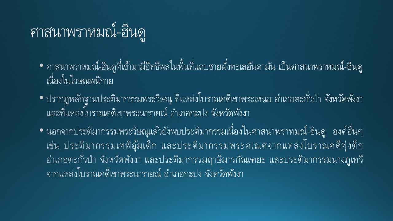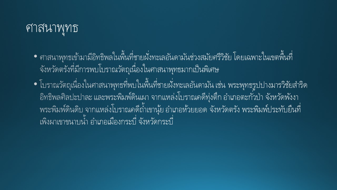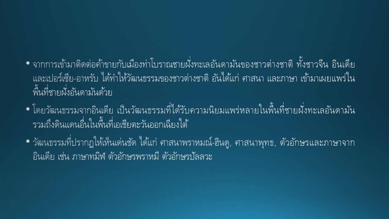 องค์ความรู้วิชาการ เรื่อง ชายฝั่งอันดามันของประเทศไทย ตอนที่ ๒ อิทธิพลทางวัฒนธรรมของชาวต่างชาติที่เข้ามาในพื้นที่