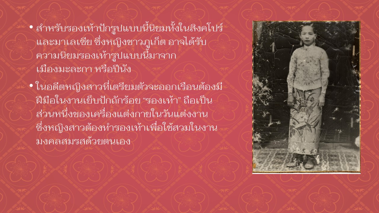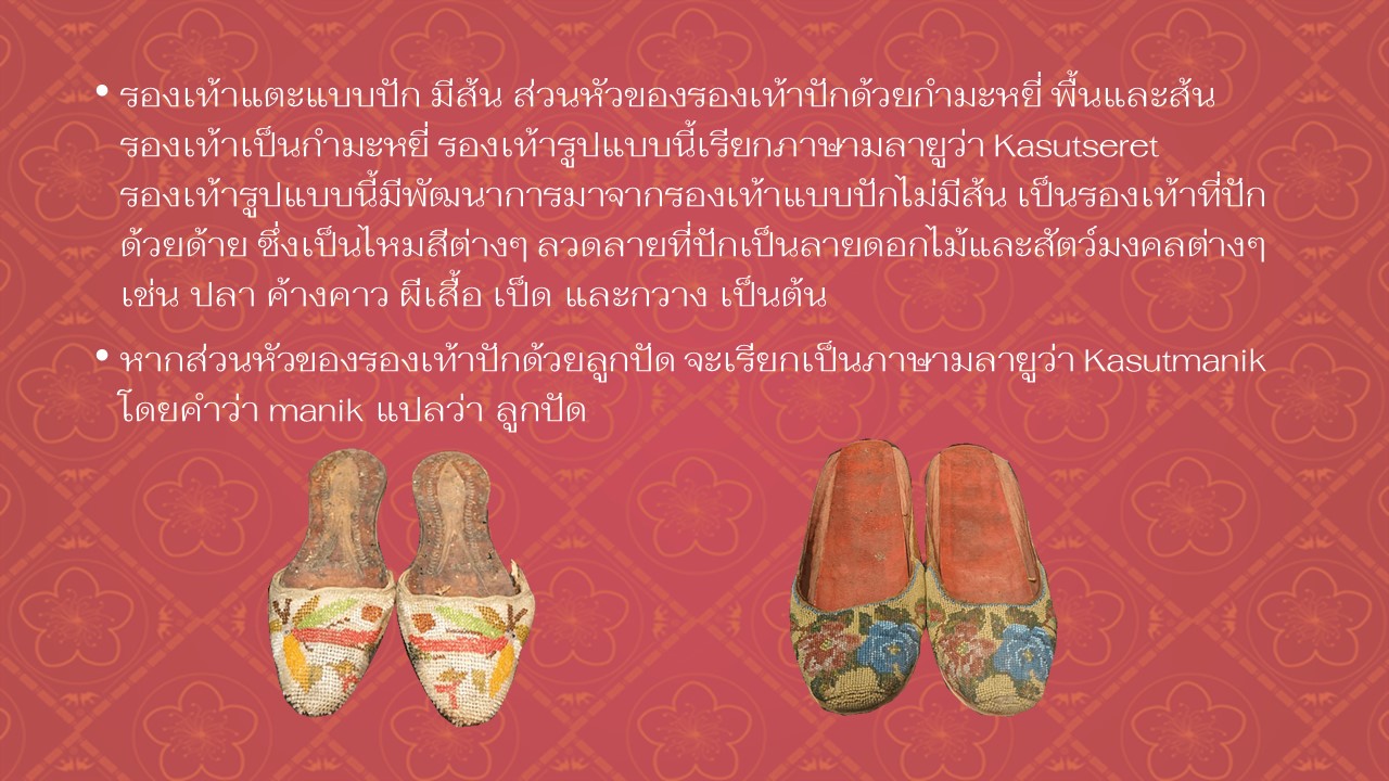 องค์ความรู้ เรื่อง "รองเท้าปัก" จัดทำข้อมูลโดย พิพิธภัณฑสถานแห่งชาติ ถลาง จังหวัดภูเก็ต