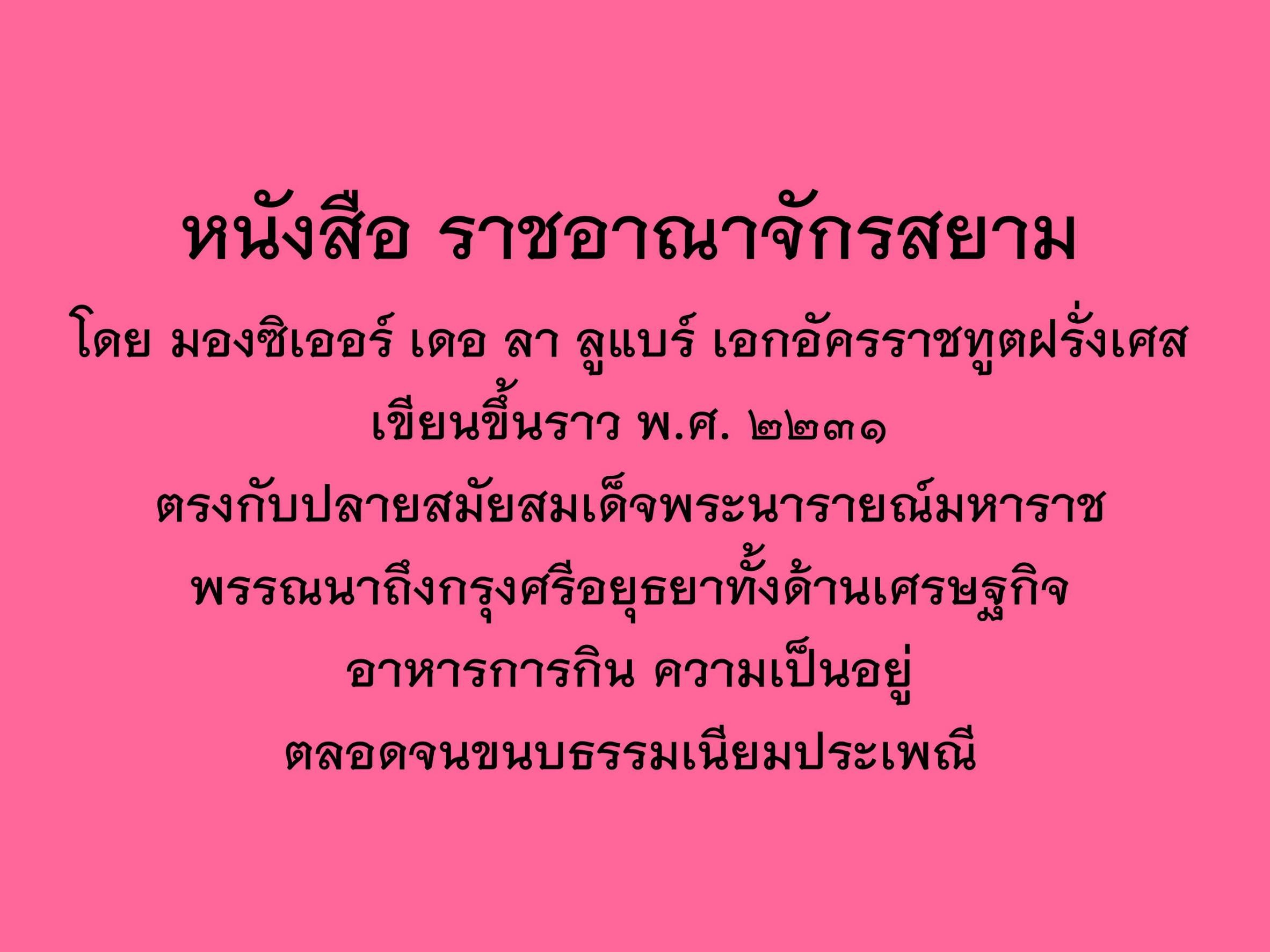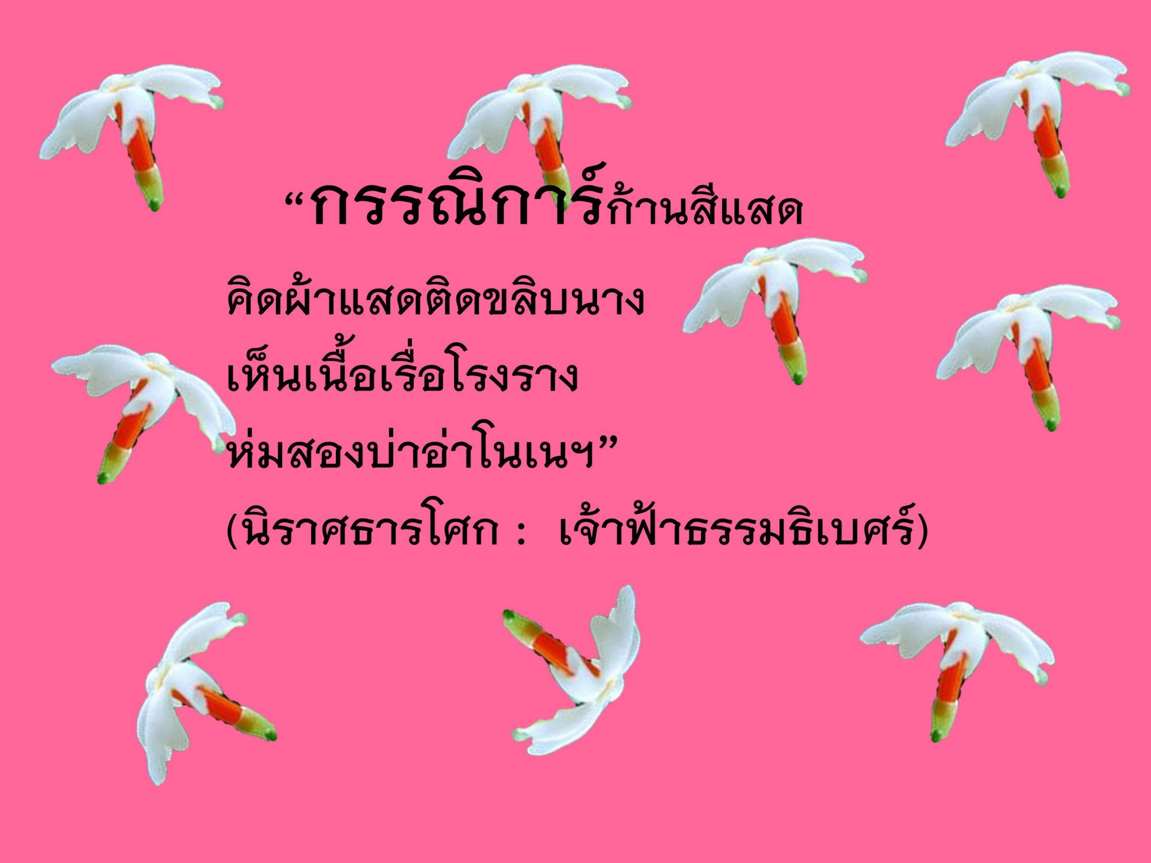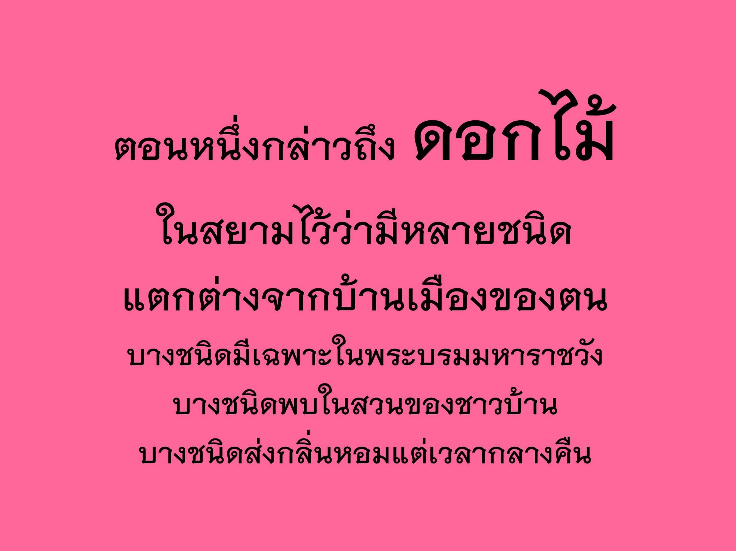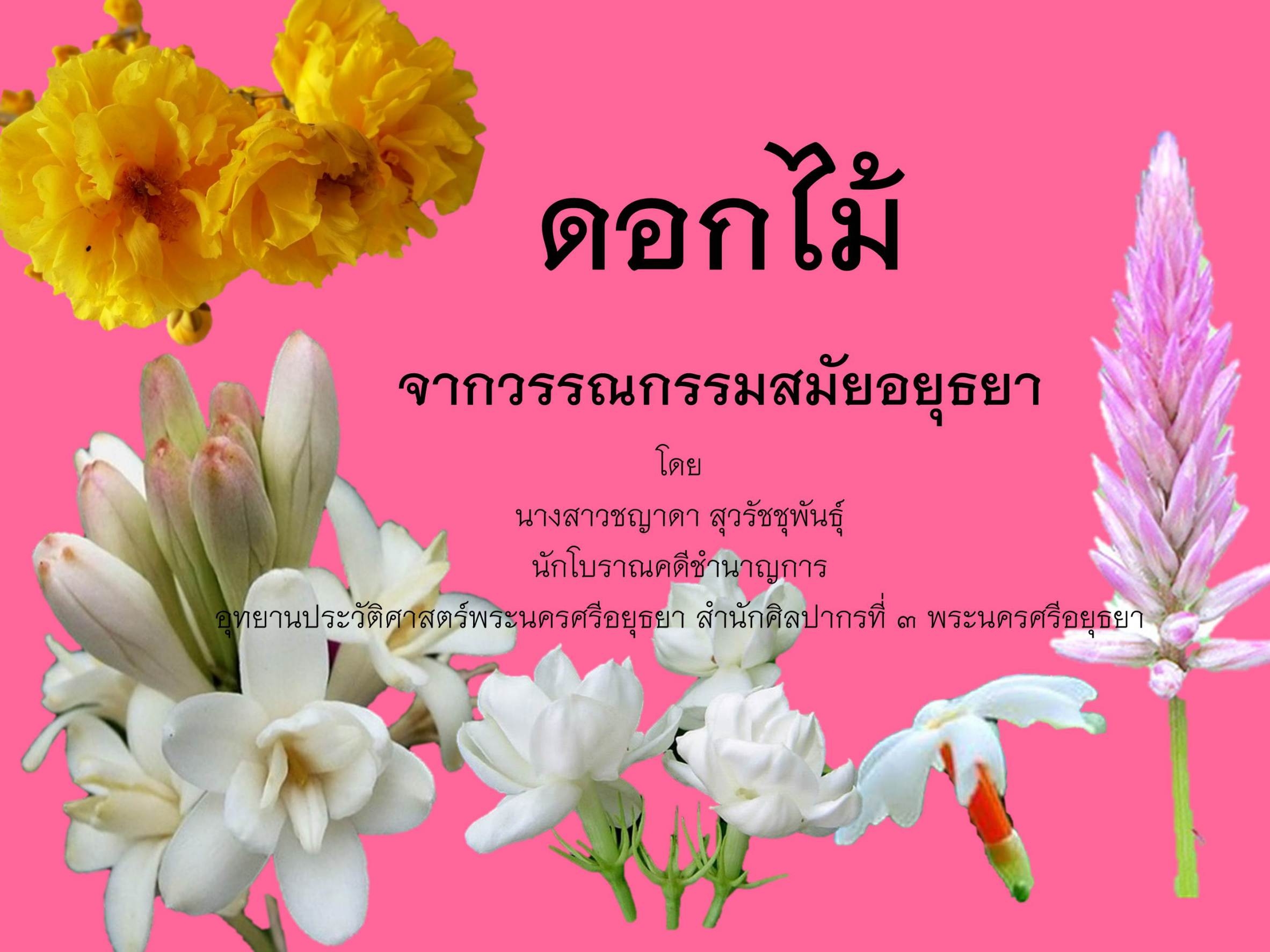 สรรพสาระ อยุธยา... ในหัวข้อ เบ็ดเตล็ด กรุงเก่า เรื่อง "ดอกไม้จากวรรณกรรมสมัยอยุธยา" เรียบเรียงข้อมูลโดย นางสาวชญาดา สุวรัชชุพันธุ์ นักโบราณคดีชำนาญการ อุทยานประวัติศาสตร์พระนครศรีอยุธยา