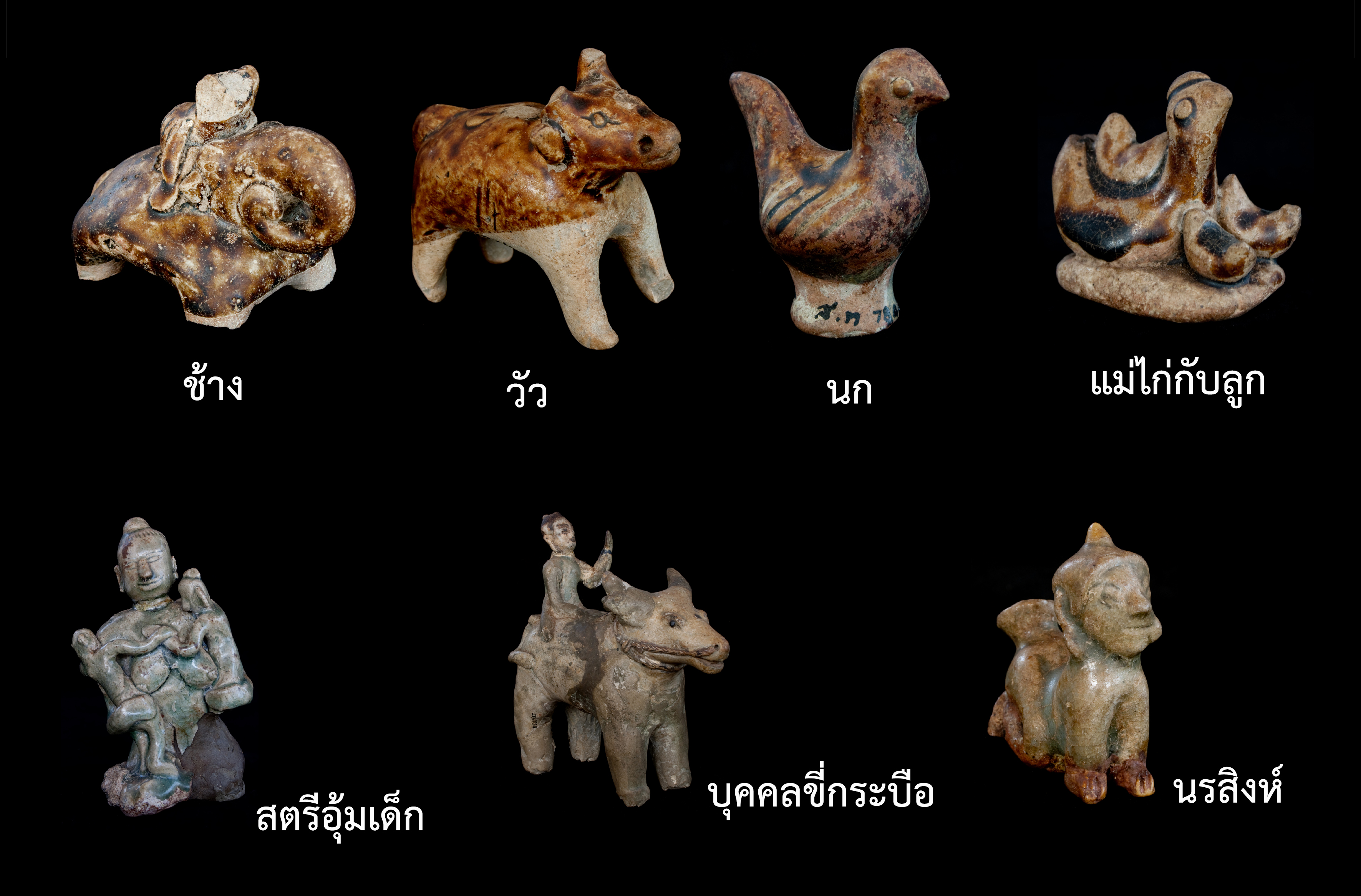 ตุ๊กตาสังคโลก เป็นสังคโลกประเภทหนึ่งที่พบมากในแหล่งโบราณคดีที่ปรากฏหลักฐานการพบเครื่องสังคโลก นิยมปั้นเป็นรูปบุคคลในอิริยาบถต่าง ๆ เช่น สตรีอุ้มเด็ก บุคคลขี่กระบือ และรูปสัตว์ อาทิ ช้าง วัว นก แม่ไก่กับลูก