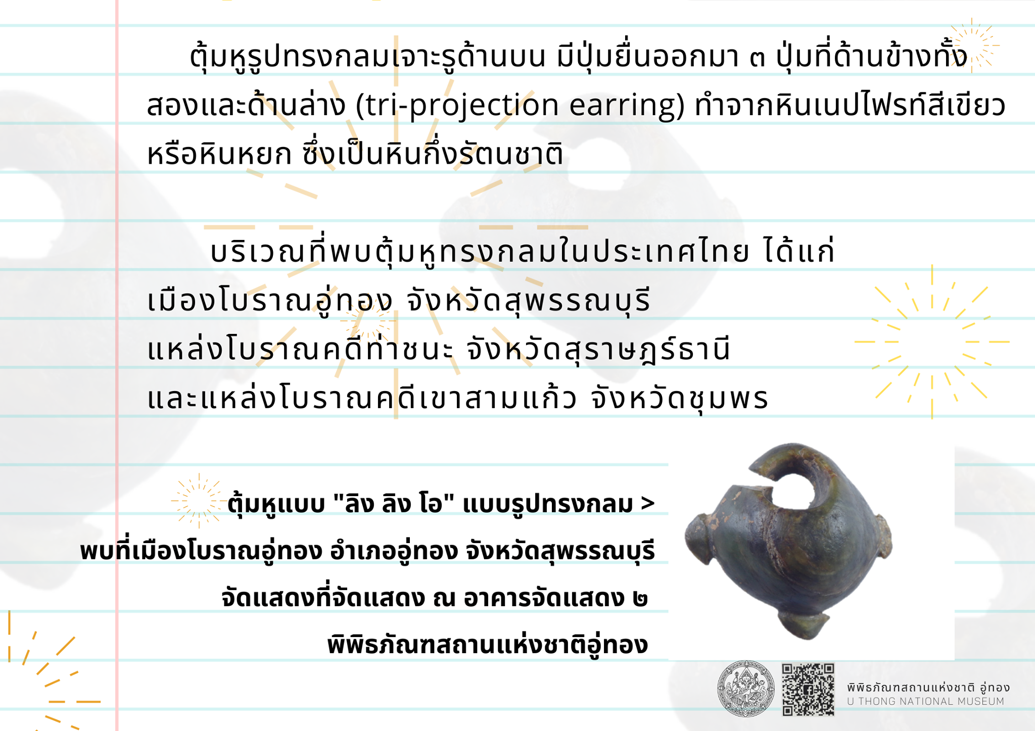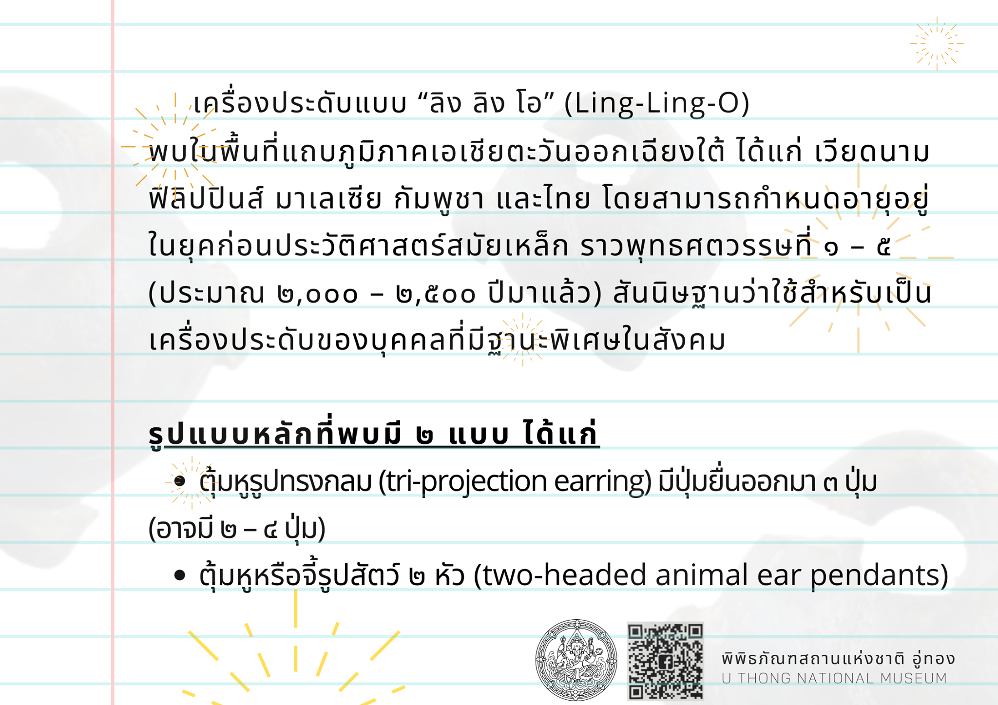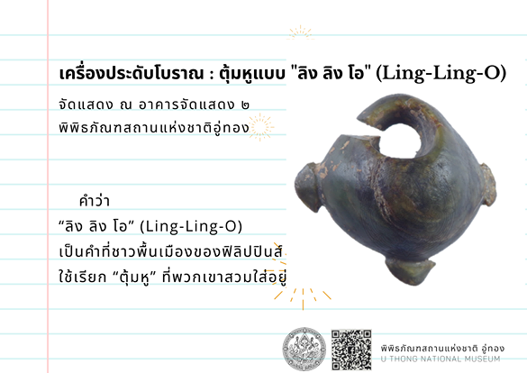 องค์ความรู้ เรื่อง เครื่องประดับโบราณ : ตุ้มหูแบบ "ลิง ลิง โอ" (Ling-Ling-O) จัดทำข้อมูลโดย พิพิธภัณฑสถานแห่งชาติ อู่ทอง
