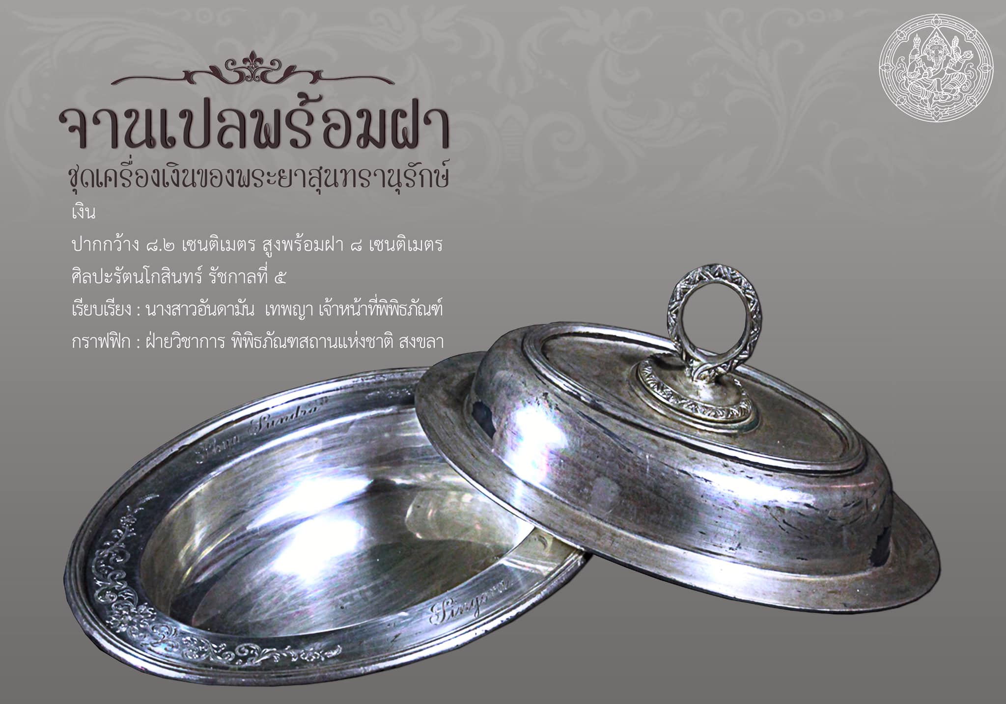 “ชวนชม” โบราณวัตถุชิ้นเด่นของพิพิธภัณฑสถานแห่งชาติ สงขลา วันนี้ขอนำเสนอ “ชุดจานเปลพร้อมฝา ภาชนะเครื่องเงินของพระยาสุนทรานุรักษ์”