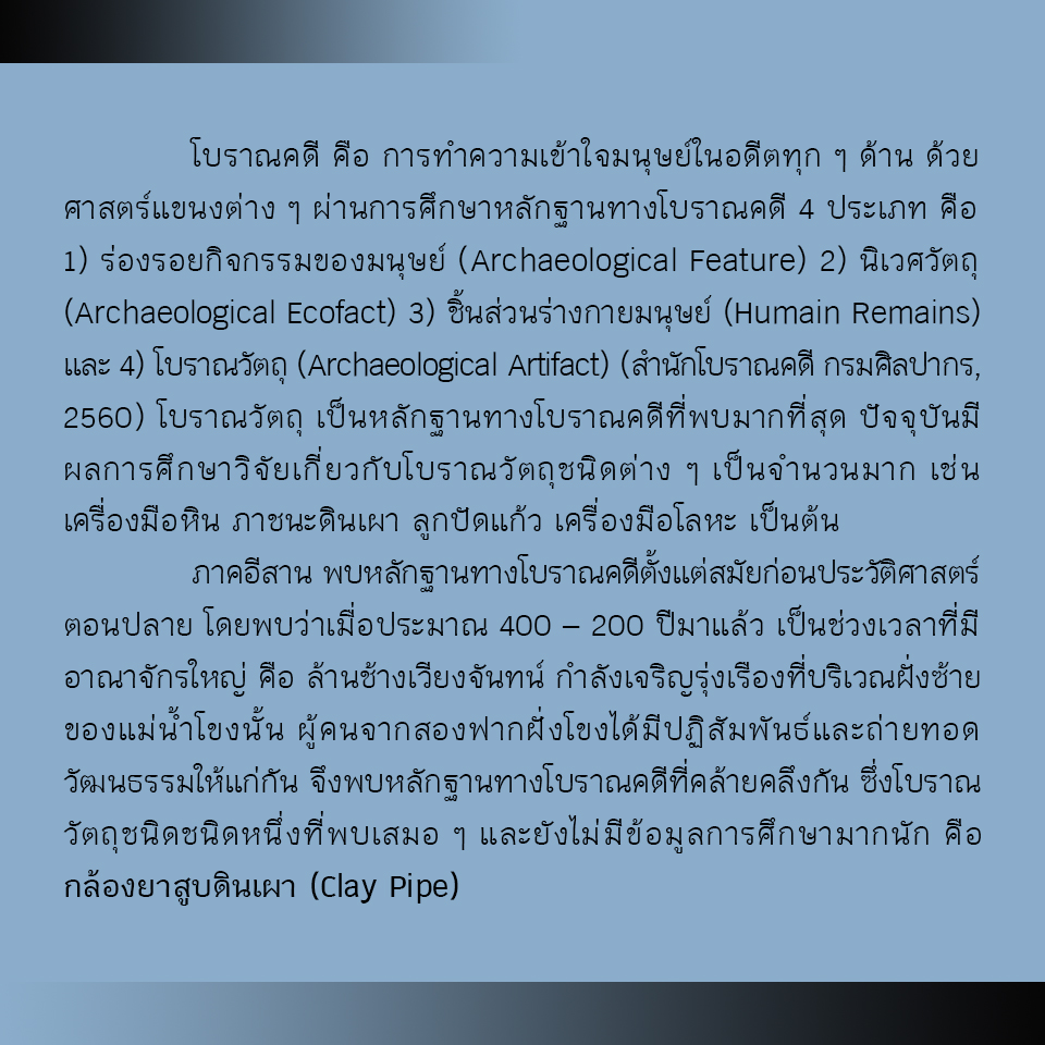 องค์ความรู้ เรื่อง กล้องยาสูบดินเผา (Clay Pipe) ตอนที่ ๑ ข้อมูลทั่วไปเรื่อง กล้องยาสูบดินเผาจากงานโบราณคดี