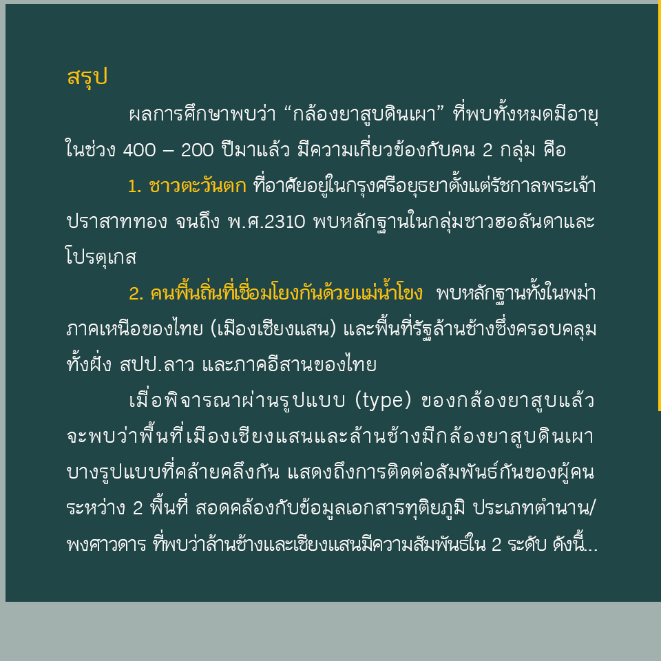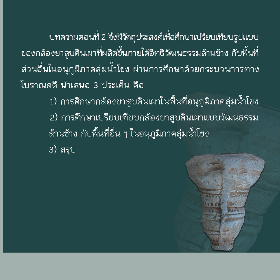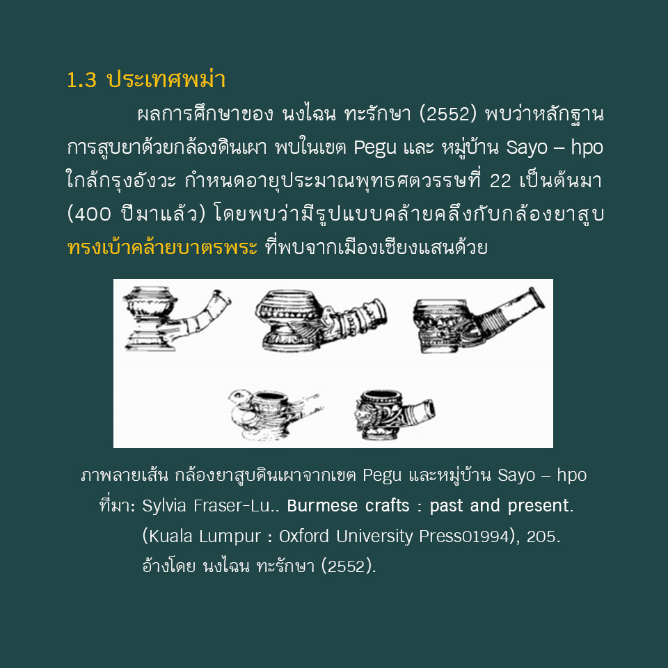 งค์ความรู้ เรื่อง กล้องยาสูบดินเผา (Pipe/Clay Pipe) ตอนที่ ๒ การศึกษาเปรียบเทียบกล้องยาสูบดินเผาที่พบในวัฒนธรรมล้านช้างกับแหล่งโบราณคดีอื่น ในอนุภูมิภาคลุ่มน้ำโขง