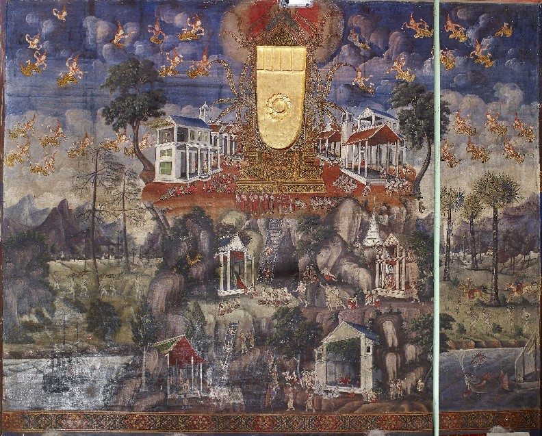 ภาพที่ ๔ ภาพจิตรกรรมเหนือบานหน้าต่างผนังด้านซ้ายและด้านขวาของพระประธาน