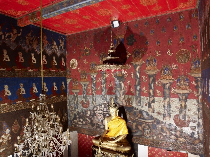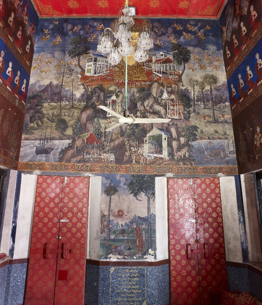 ภาพที่ ๑ ผนังเหนือบานประตูด้านหน้าพระประธาน