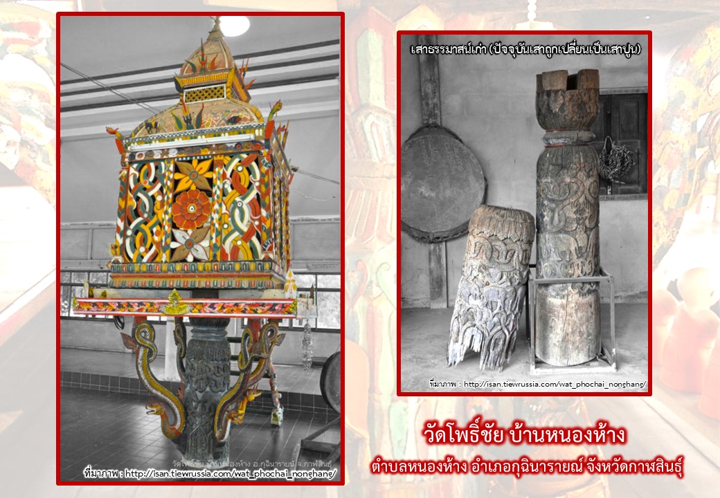 ธรรมาสน์เสาเดียว จัดอยู่ในกลุ่มของหอธรรมาสน์ มีลักษณะเด่น คือ ส่วนฐานของธรรมาสน์จะมี เสาเดียว และมีคันทวยหรือแขนนาง รองรับน้ำหนักจากตัวเรือนธรรมาสน์ลงสู่เสา ส่วนตัวเรือนและส่วนยอดของธรรมาสน์ จะมีความคล้ายคลึงกับหอธรรมาสน์ที่พบได้ทั่วไปในภาคอีสาน เช่น ส่วนตัวเรือนมักนิยมสร้างในผังสี่เหลี่ยมจัตุรัส และได้รับการประดับตกแต่งให้สวยงามด้วยการทาสี เขียนภาพจิตรกรรม ที่ส่วนใหญ่สะท้อนความเชื่อทางพุทธศาสนา วิถีชีวิต และนิทานพื้นบ้าน ผสมผสานงานแกะสลักหรืองานฉลุไม้ โดยนิยมสลักรูปดอกไม้ ใบไม้ และลวดลายตามธรรมชาติ นอกจากความสวยงามแล้ว เจตนาก็เพื่อทำช่องให้อากาศถ่ายเท และเป็นการอำพรางอิริยาบทของพระสงฆ์ขณะนั่งเทศน์บนธรรมาสน์ ตัวเรือนมีทั้งแบบผนังโปร่งและผนังทึบ ส่วนยอดพบทั้งหลังคาทรงจั่ว หลังคาทรงจัตุรมุข (ทรงจั่วซ้อนชั้น) และหลังคาทรงมณฑป (ทรงปราสาท) ซึ่งจำนวนชั้นหลังคาที่ซ้อนก็ขึ้นอยู่กับช่างฝีมือผู้สร้าง ธรรมาสน์เสาเดียวถือเป็นเอกลักษณ์ ทางวัฒนธรรมที่พบเฉพาะในกลุ่มผู้ไท เช่นที่วัดโพธิ์ชัย บ้านหนองห้าง วัดศรีภูขันธ์ บ้านโคกโก่ง วัดหอคำ บ้านคำกั้ง วัดจุมจังเหนือ บ้านจุมจัง วัดบ้านหนองบัวทอง บ้านหนองบัวทอง อำเภอกุฉินารายณ์ จังหวัดกาฬสินธุ์ และ วัดพิจิตรสังฆาราม อำเภอหนองสูง จังหวัดมุกดาหาร