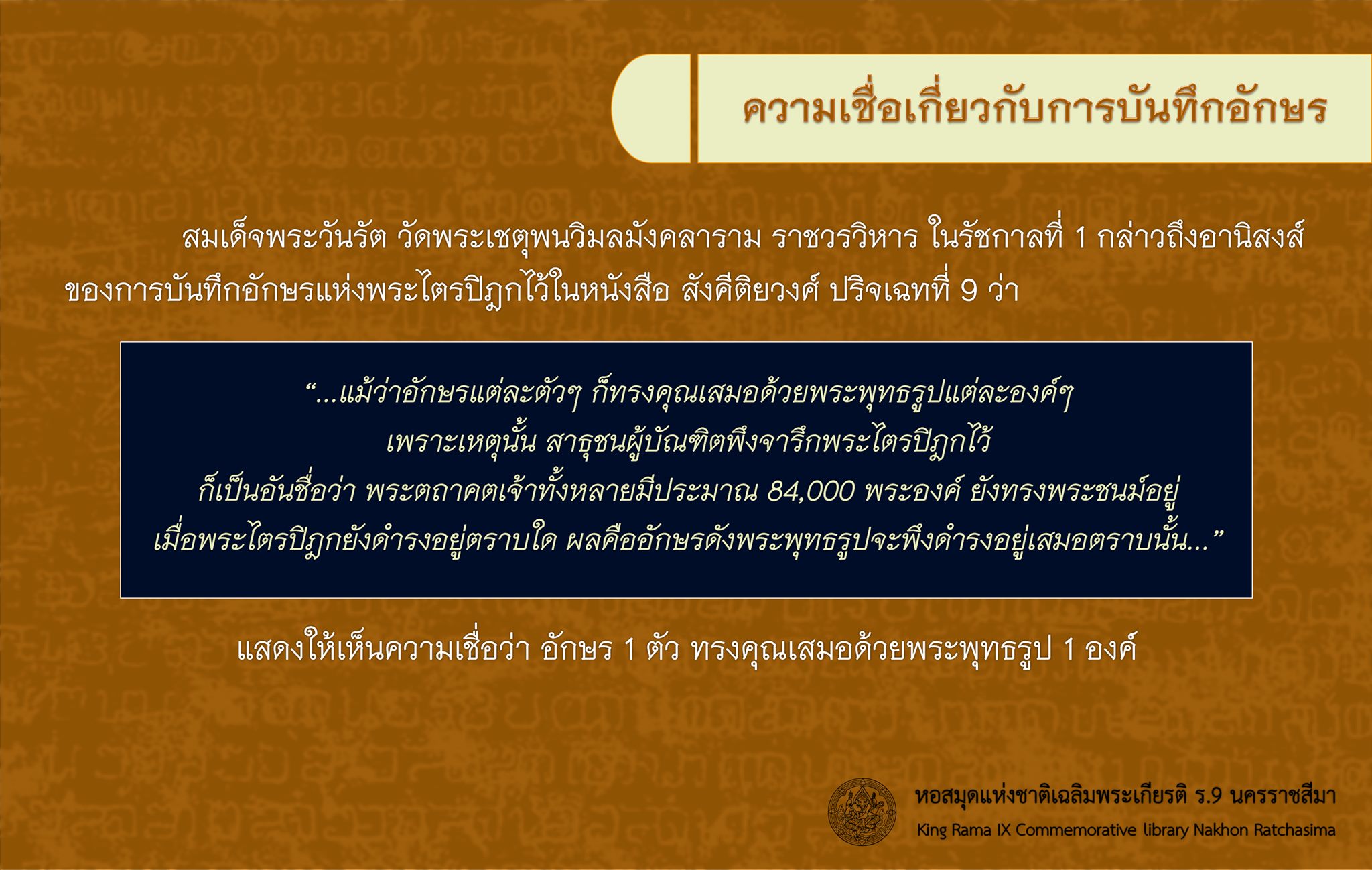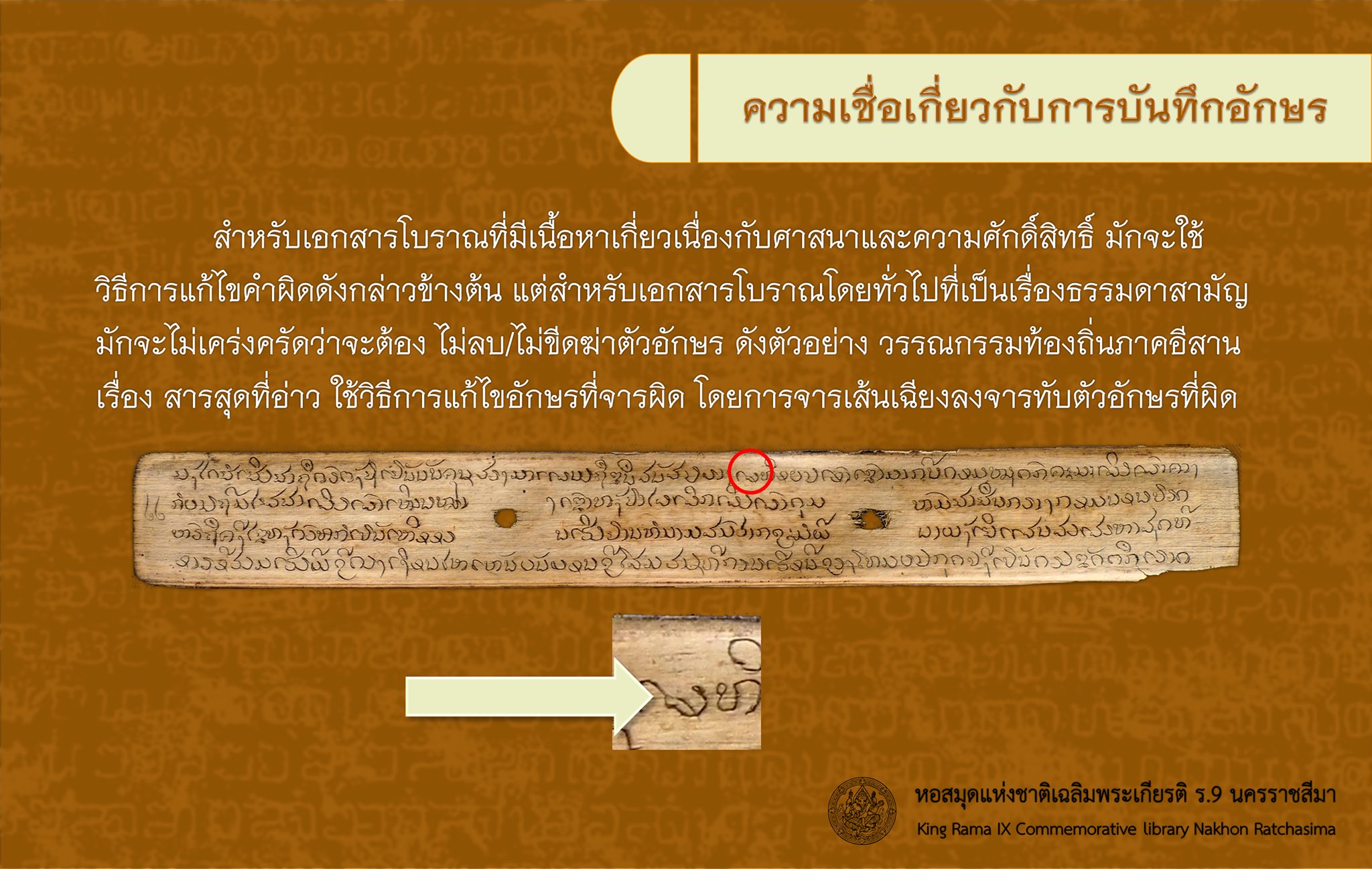 องค์ความรู้จากหอสมุดแห่งชาติเฉลิมพระเกียรติ ร.๙ นครราชสีมา เรื่อง สาระจากเอกสารโบราณ ตอน ความเชื่อเกี่ยวกับการบันทึกอักษร