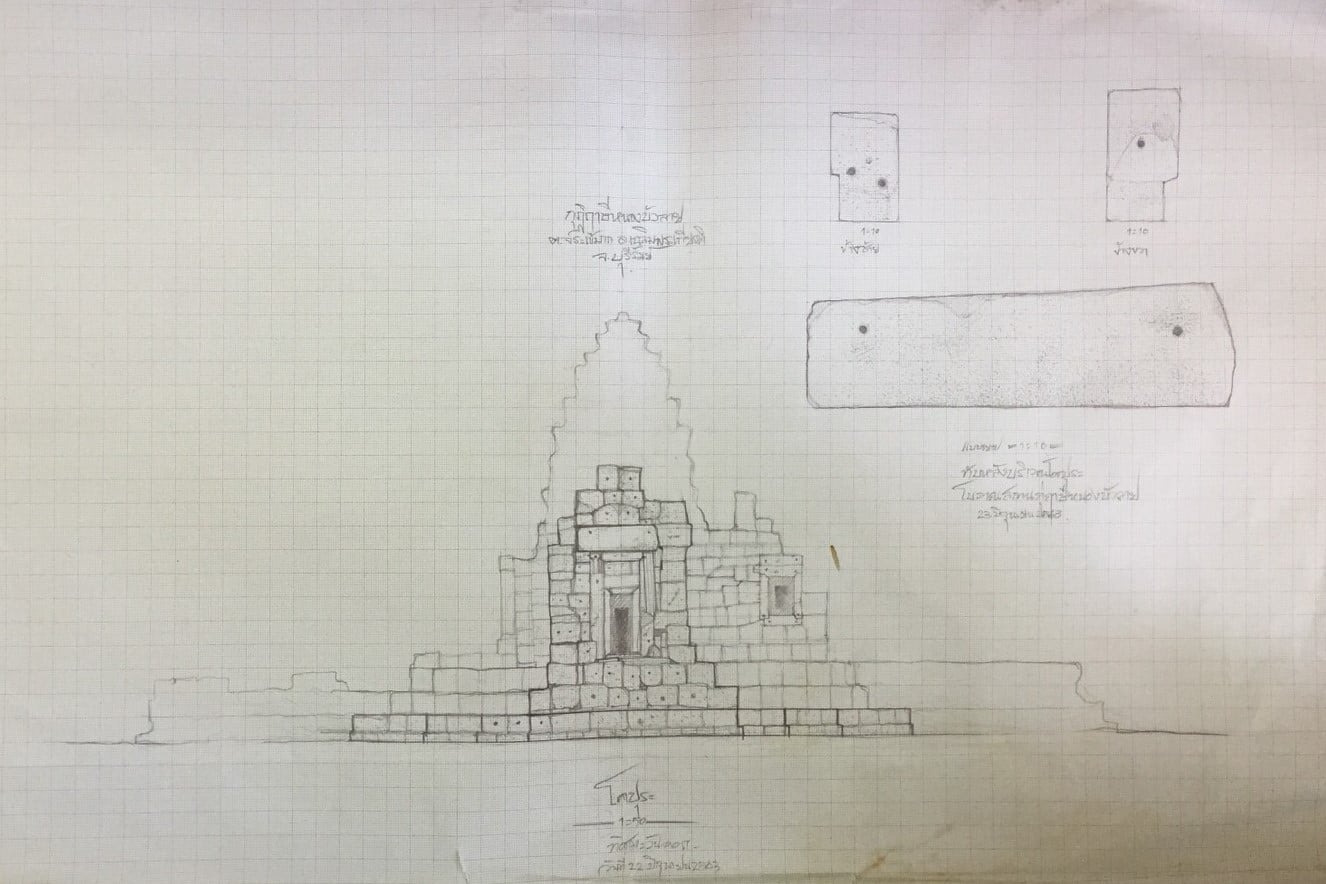 การสำรวจศิลปกรรมประเภทแกะสลักหินทรายบนทับหลัง โบราณสถานประเภท อโรคยาศาล..."กุฏิฤาษีหนองบัวลาย"