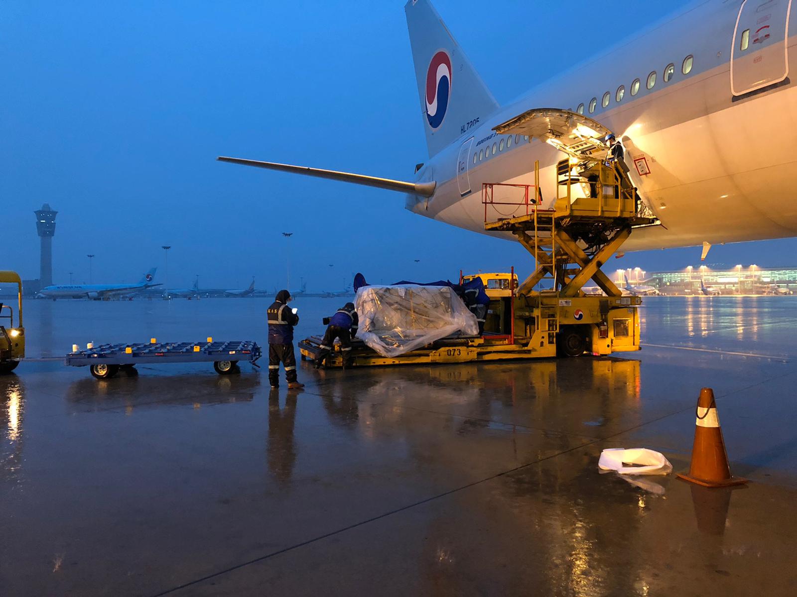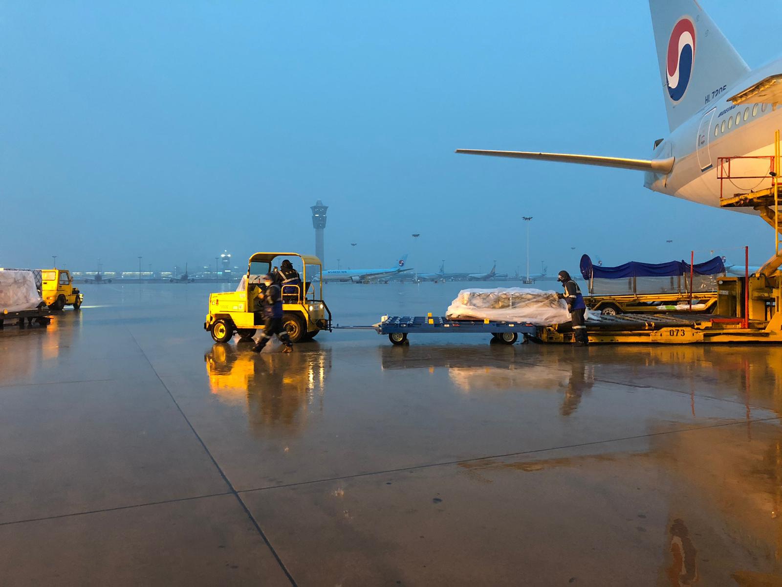 ทับหลัง๒ชิ้น ถึงท่าอากาศยานอินชอน เกาหลี รอการเดินทางกลับสู่ประเทศไทย