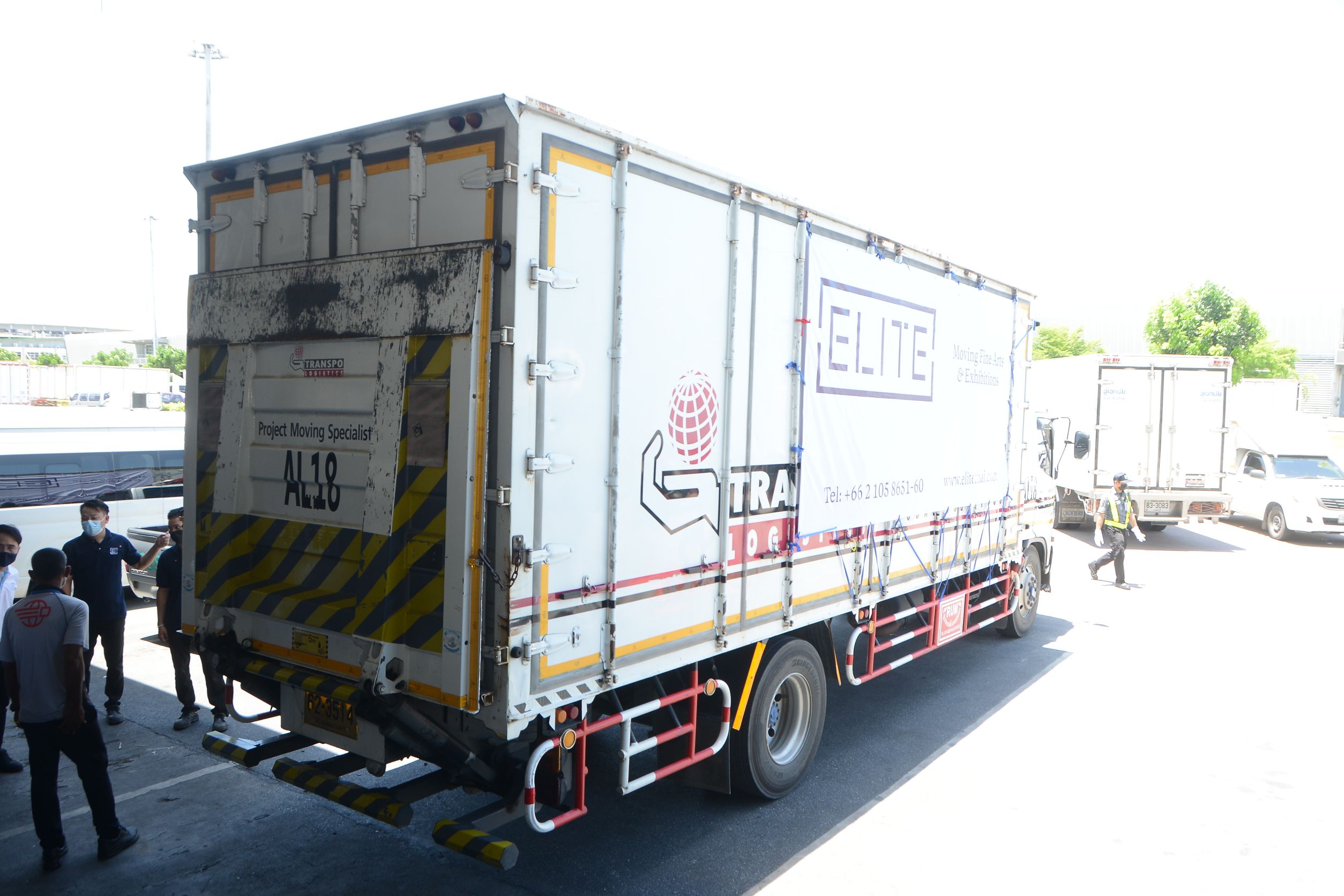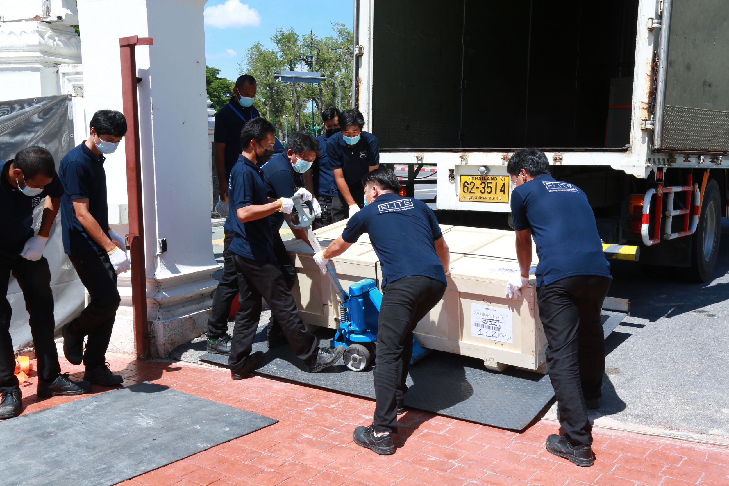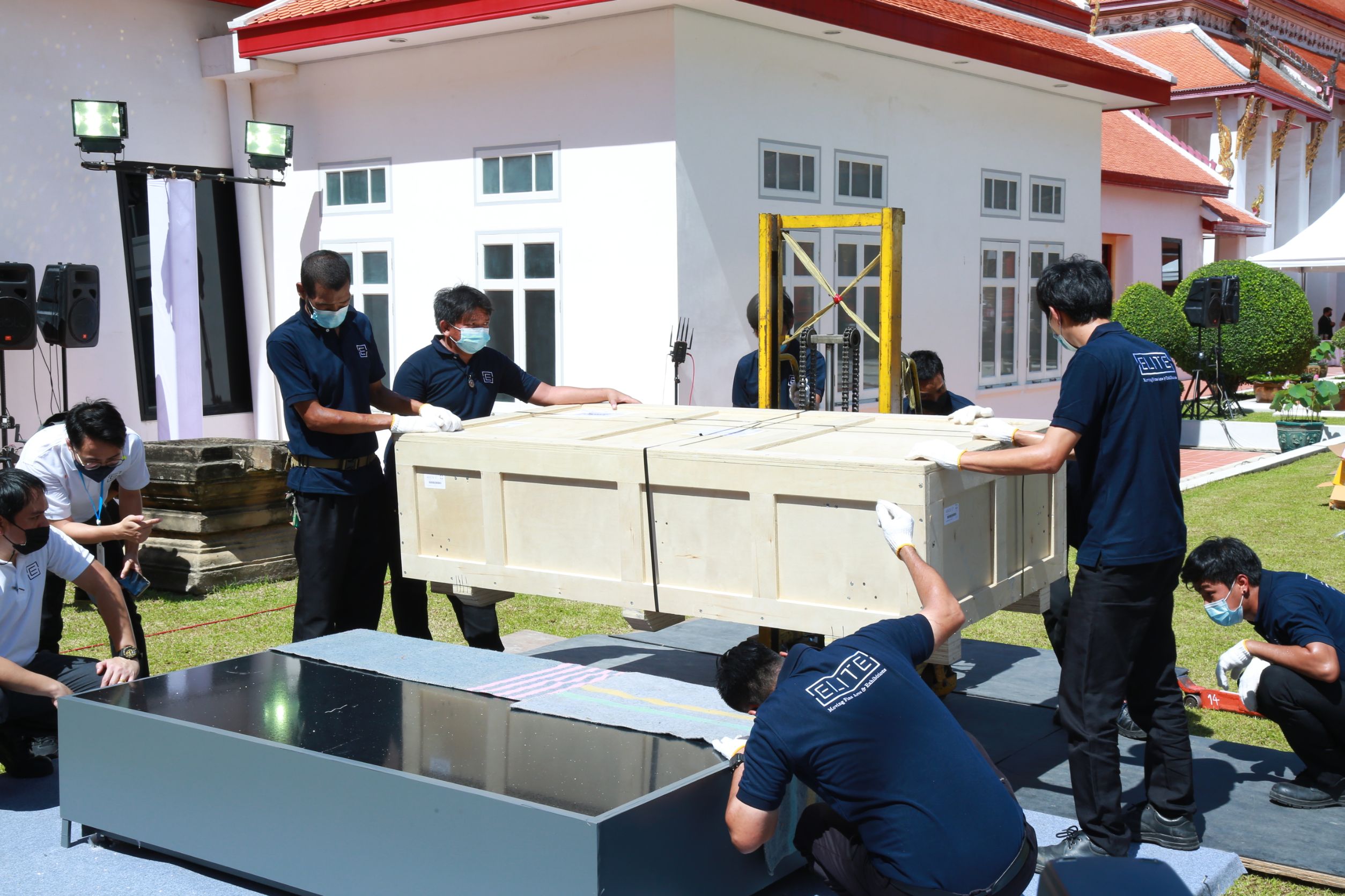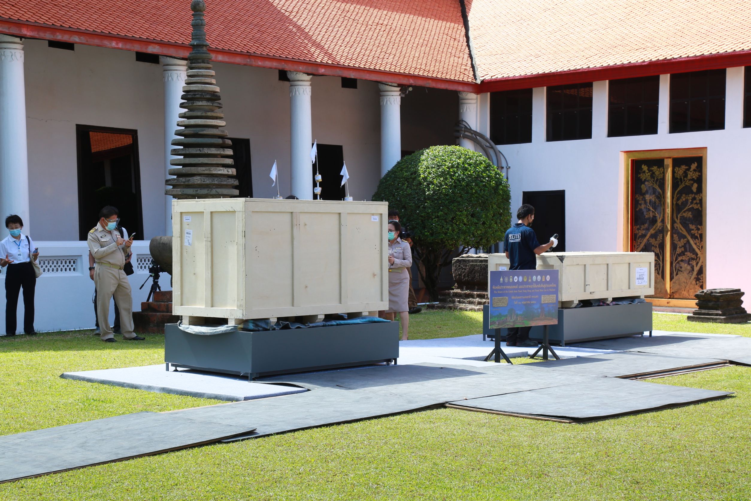 ทับหลังปราสาทหนองหงส์และปราสาทเขาโล้น เดินทางจากท่าอากาศยานสุวรรณภูมิ ถึงกรมศิลปากรแล้ว