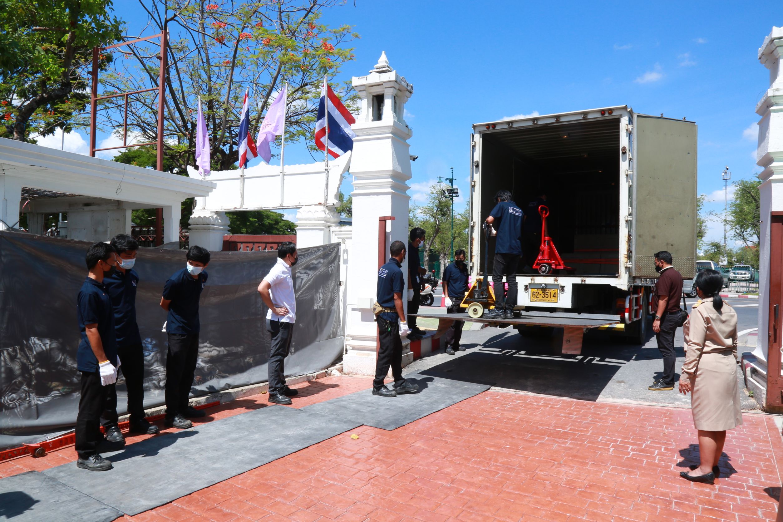 วันจันทร์ที่ ๓๑ พฤษภาคม ๒๕๖๔ เวลา ๑๓.๐๐ น. ทับหลังปราสาทหนองหงส์และปราสาทเขาโล้น เดินทางออกจากท่าอากาศยานสุวรรณภูมิ กรมศิลปากรขอขอบคุณ กรมศุลกากร ที่อำนวยความสะดวกในการนำเข้าทับหลังทั้ง ๒ รายการ ให้ลุล่วงไปด้วยดี รวมถึงท่าอากาศยานสุวรรณภูมิที่อำนวยความสะดวกในการปฏิบัติงานในพื้นที่ พร้อมกันนี้ขอขอบคุณ สำนักงานตำรวจแห่งชาติ ที่ได้ให้ความอนุเคราะห์จัดรถนำขบวนเพื่อการรักษาความปลอดภัยสูงสุดให้กับโบราณวัตถุชิ้นสำคัญของชาติตลอดการเดินทาง จนถึงพิพิธภัณฑสถานแห่งชาติ พระนคร เรียบร้อยแล้ว