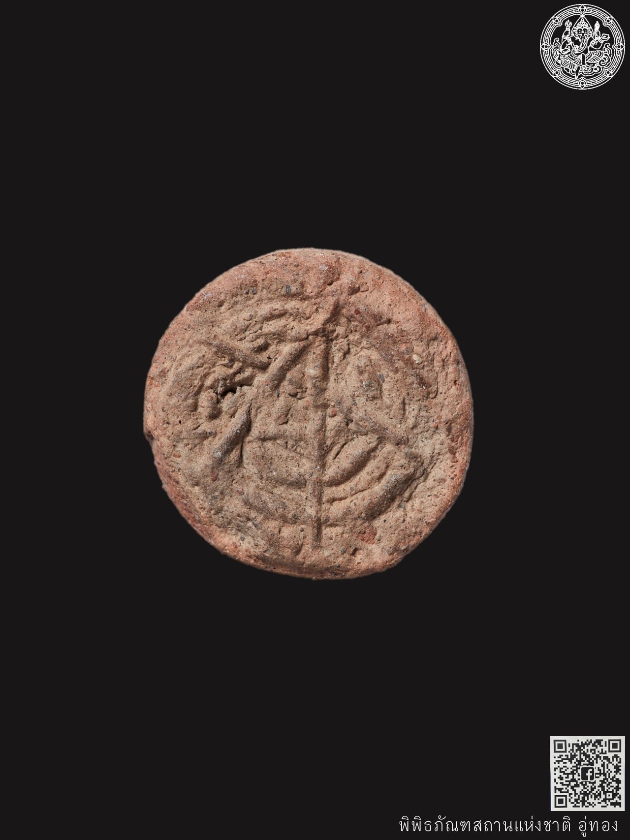 ตราดินเผารูปเรือ พบบริเวณเมืองโบราณอู่ทอง จังหวัดสุพรรณบุรี จัดแสดงห้องบรรพชนคนอู่ทอง พิพิธภัณฑสถานแห่งชาติ อู่ทอง