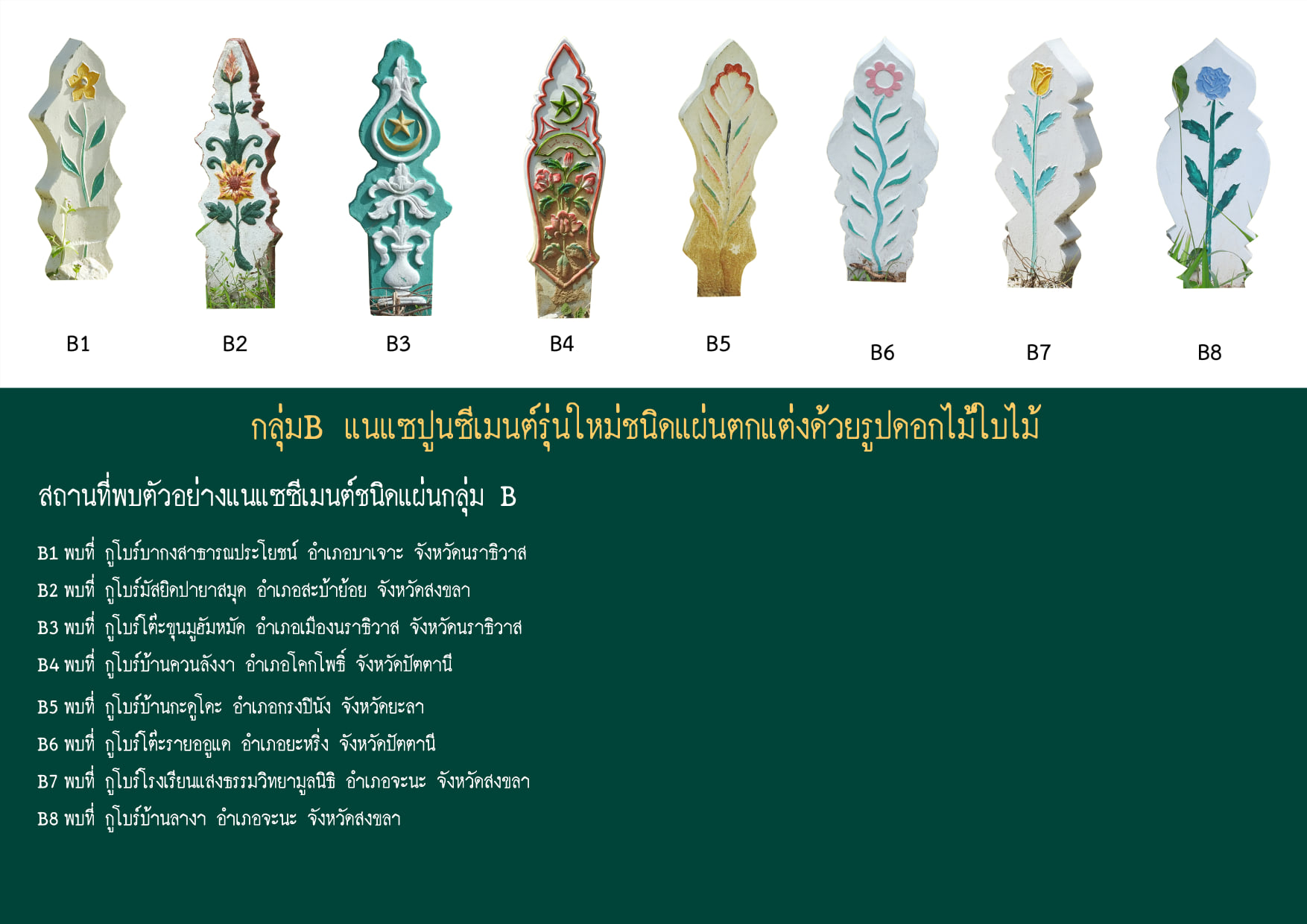 กลุ่มB แนแซปูนซีเมนต์รุ่นใหม่ชนิดแผ่นตกแต่งด้วยรูปดอกไม้ใบไม้