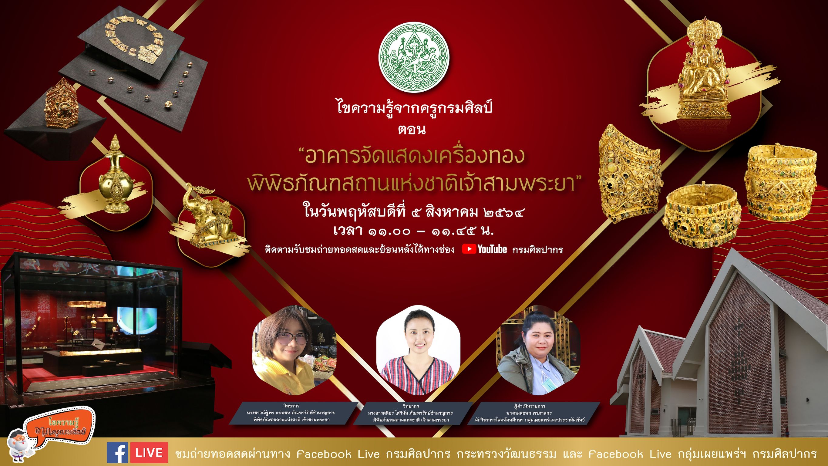 ขอเชิญชม Facebook Live รายการไขความรู้จากครูกรมศิลป์ "อาคารจัดแสดงเครื่องทอง พิพิธภัณฑสถานแห่งชาติเจ้าสามพระยา"